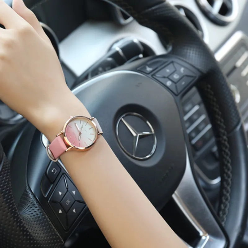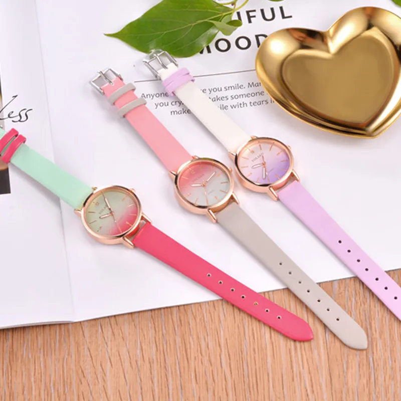 Часы женские кварцевые с кожаным ремешком, градиентные, аналоговые