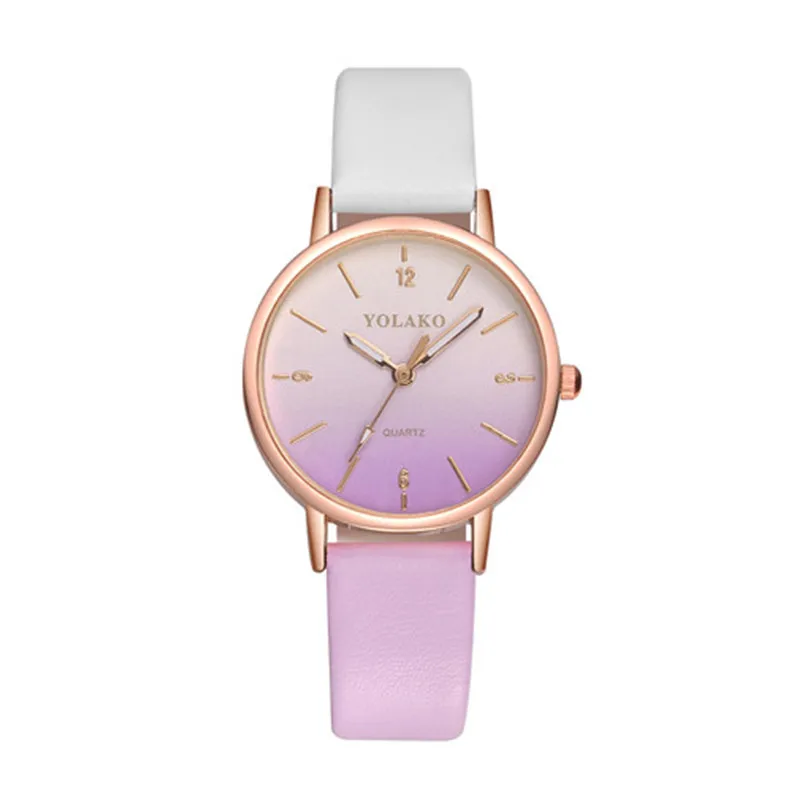 Женские Простые кварцевые часы YOLAKO с кожаным ремешком, женские наручные часы, студенческие повседневные наручные часы, женские часы, подарок