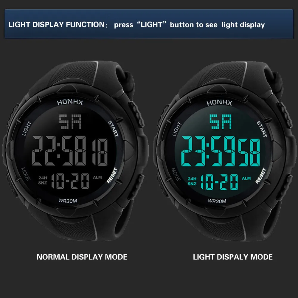 Мужские спортивные цифровые часы Led Круглый 30 м водонепроницаемые часы автоматический Дата резиновый ремешок Военные мужские часы Montre Homme