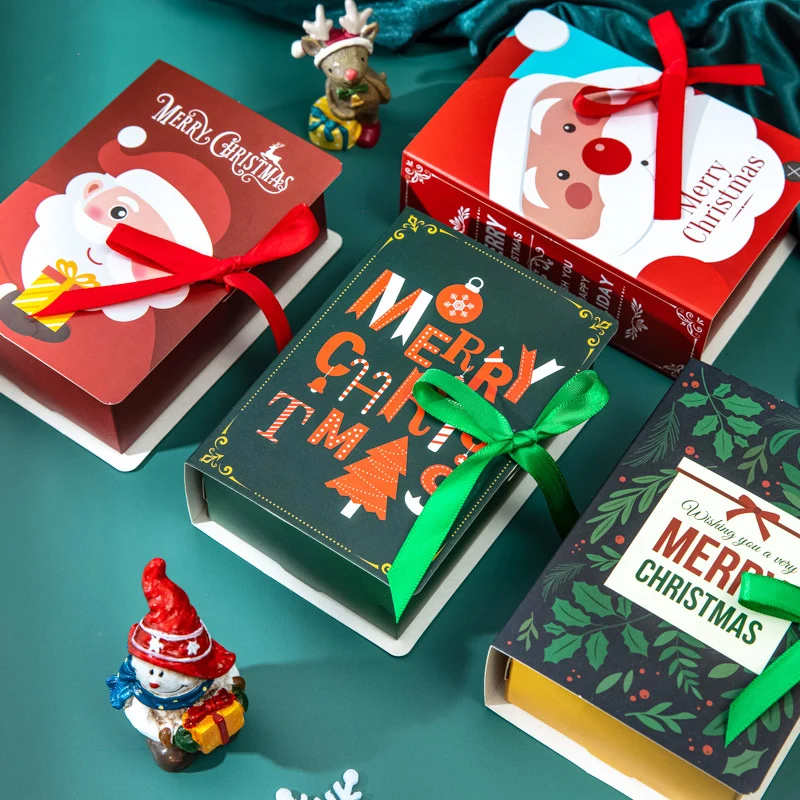 4 шт., в форме книги, рождественские коробки для конфет пакетов