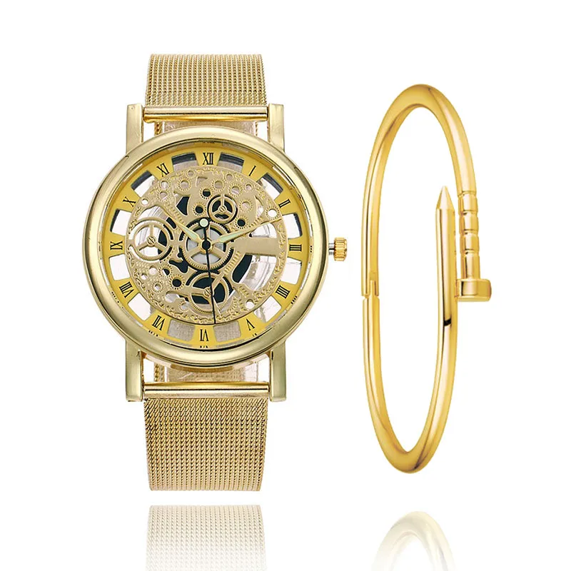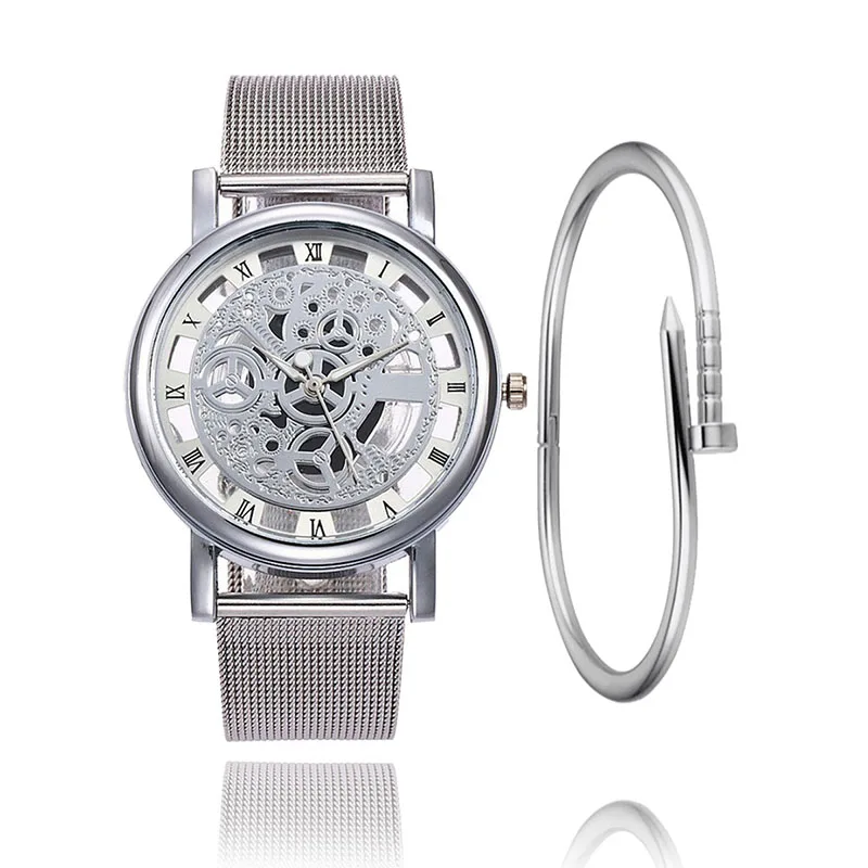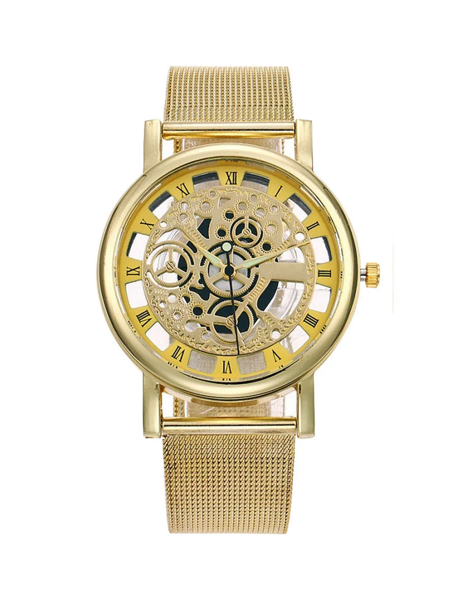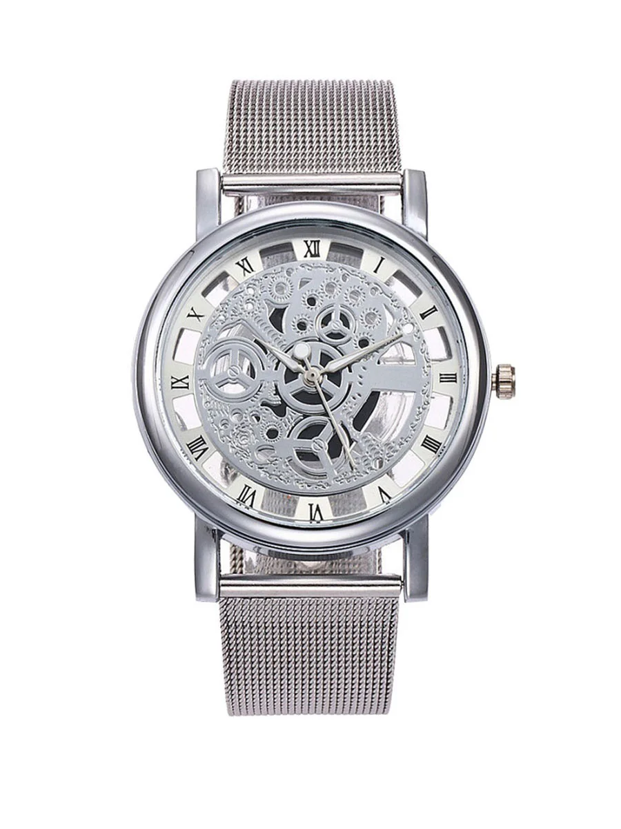 Мужские и женские наручные часы-скелетоны с сетчатым ремешком, квар...