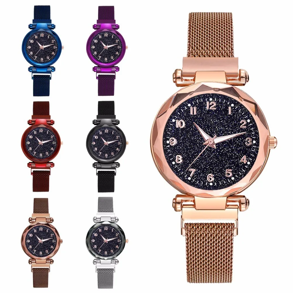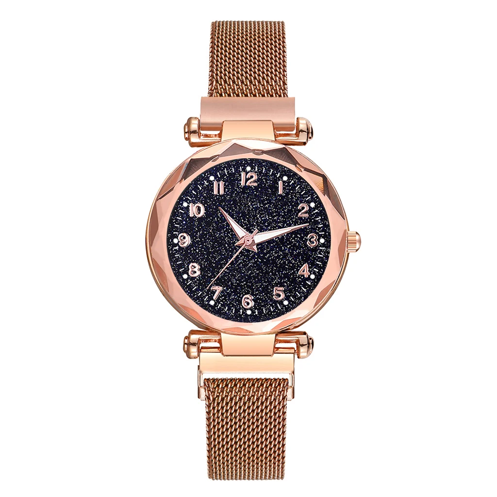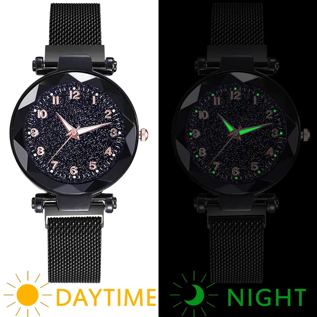 Женские светящиеся кварцевые часы со звездным небом, из нержавеющей стали
