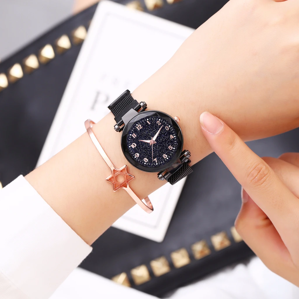 Женские кварцевые часы со звёздным небом, на магнитной застежке