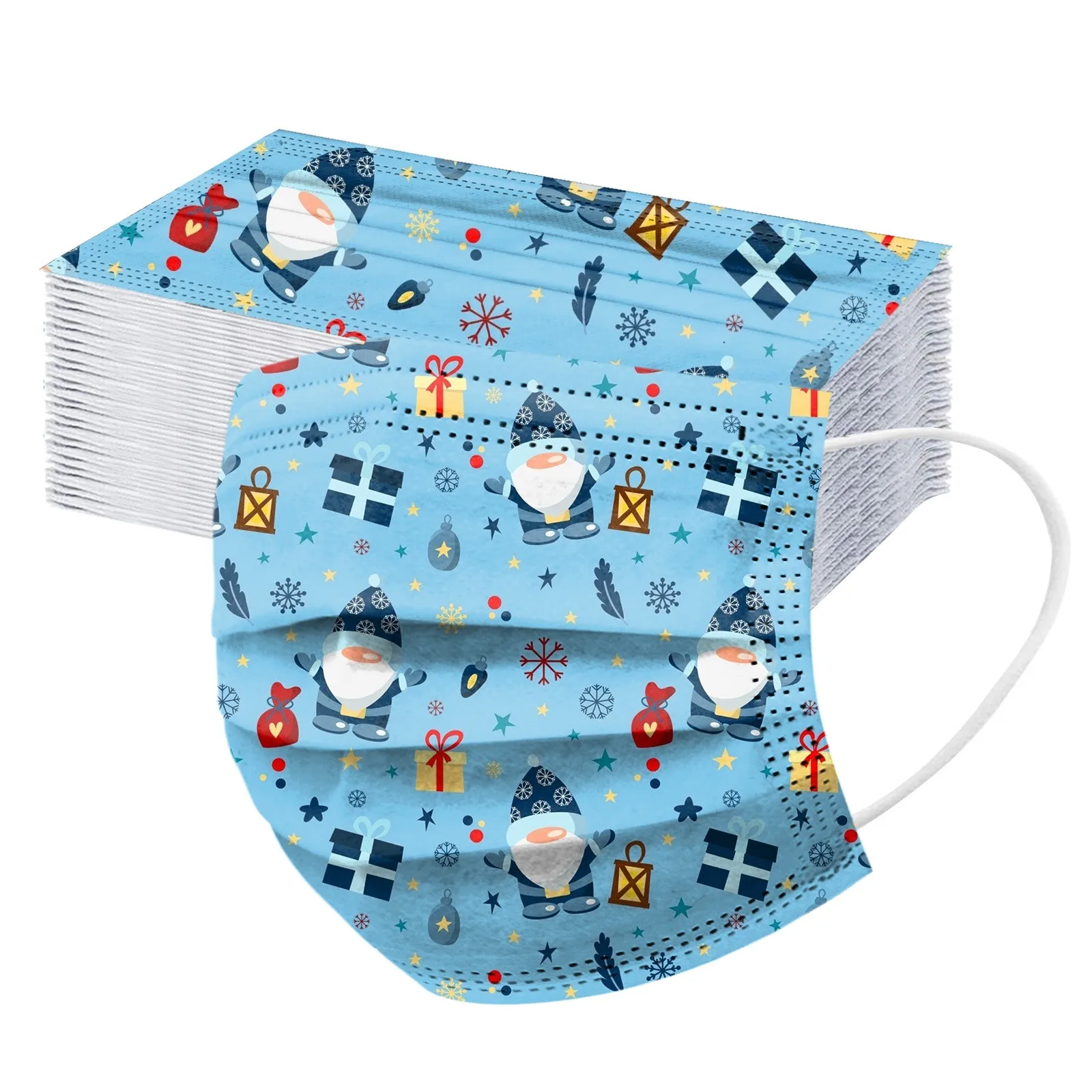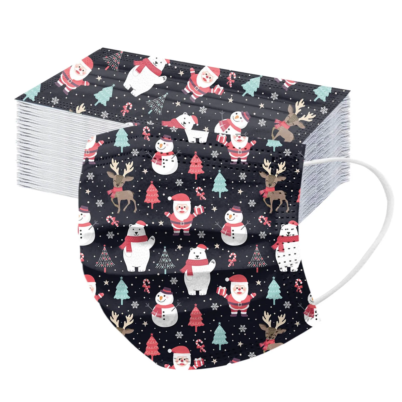 50 шт., одноразовые маски для лица с рисунком Санта-Клауса, снеговика