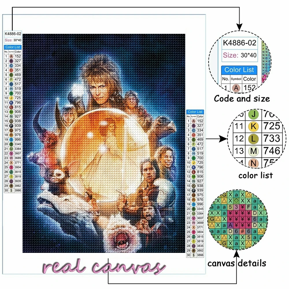 Алмазная живопись, картина с изображением рока, певицы, принца, пур...
