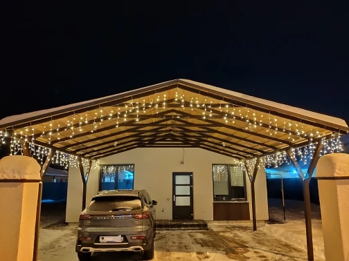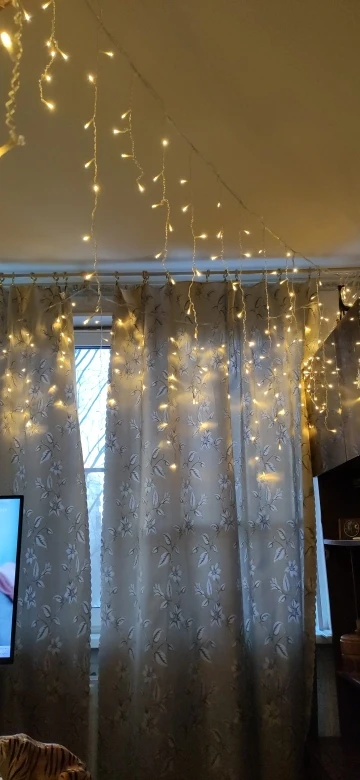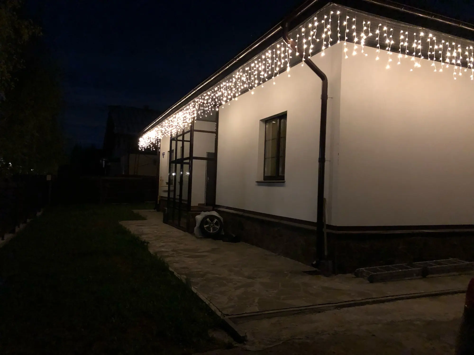 Клаааас! Гирлянда очень красивая. Брали белую цветом. Когда на улице снег, выглядит восхитительно. Свет яркий, разные режими мигания. Описанию соответствует. Доставка 2 недели в Украину (г.Полтава). Спасибо продавцу! Рекомендую! (На фото под крышей белая)