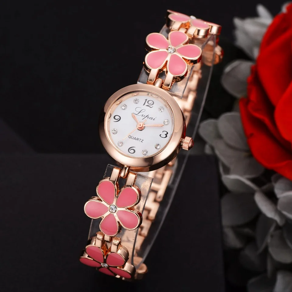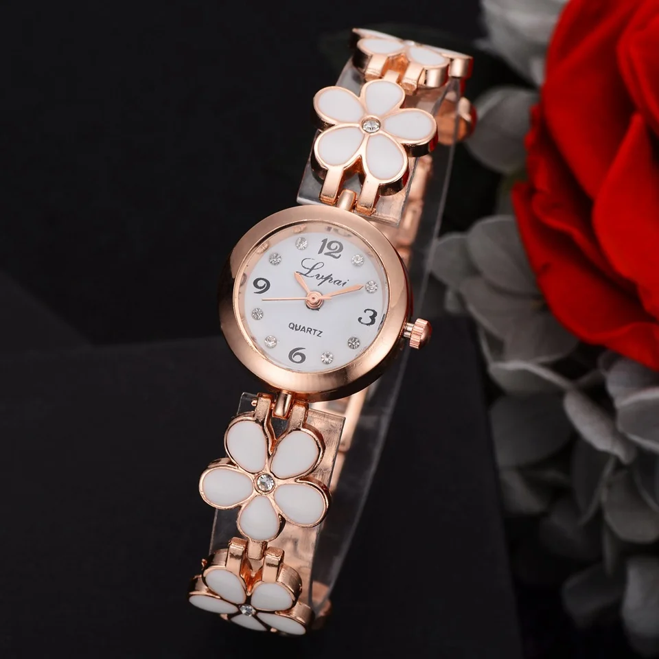 Часы наручные LVPAI женские, брендовые золотые стразы с цветком ром...