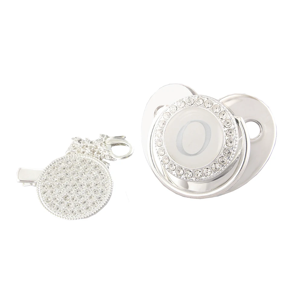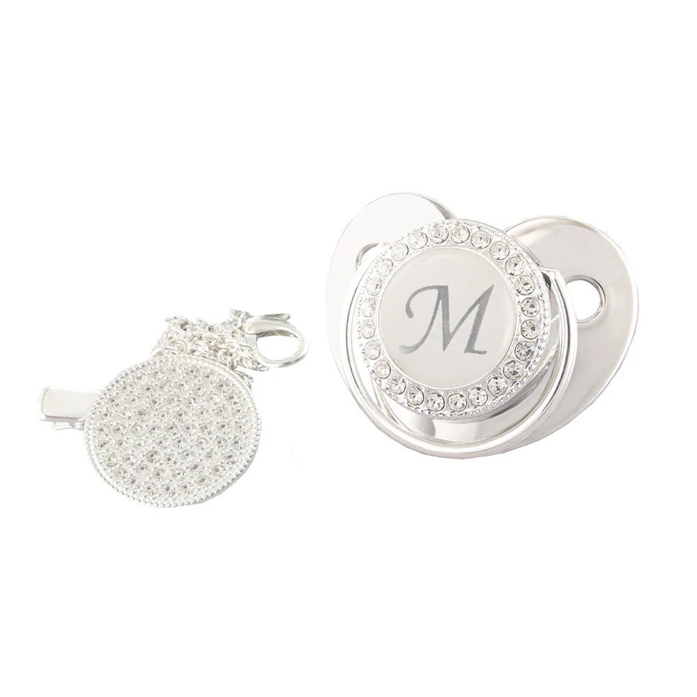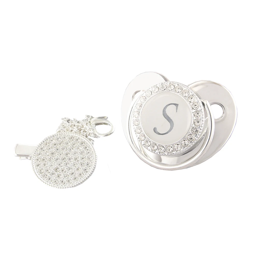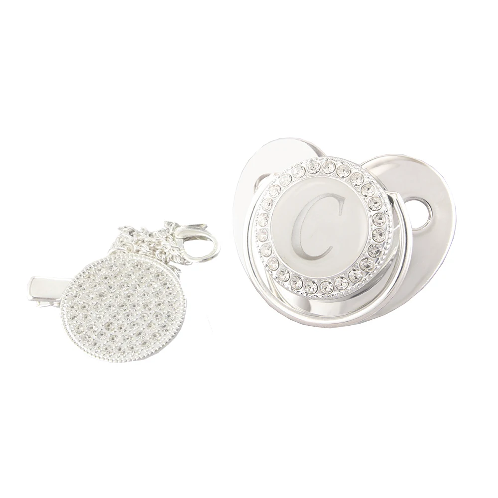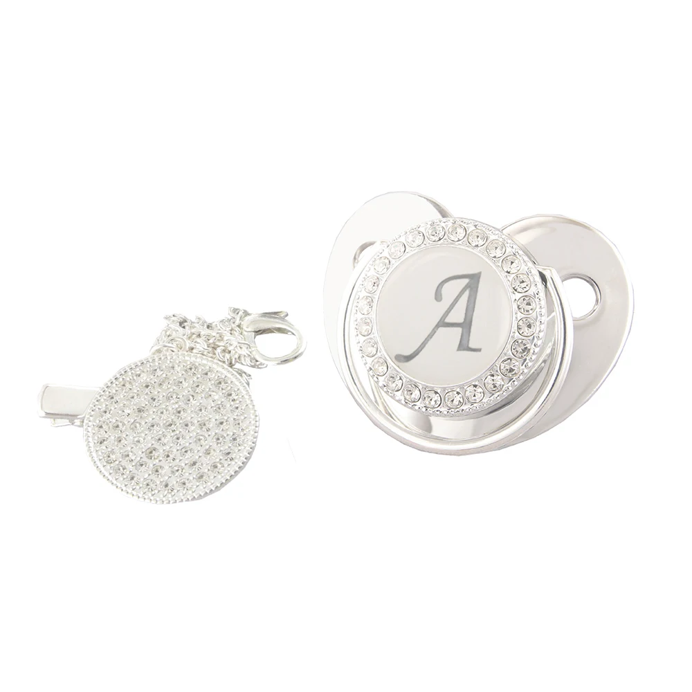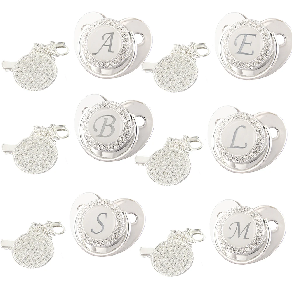 26 именных инициалов, роскошная Серебряная детская пустышка с зажимом для детей 0-12 месяцев, Силиконовая пустышка для новорожденных, подарок на день рождения ребенка