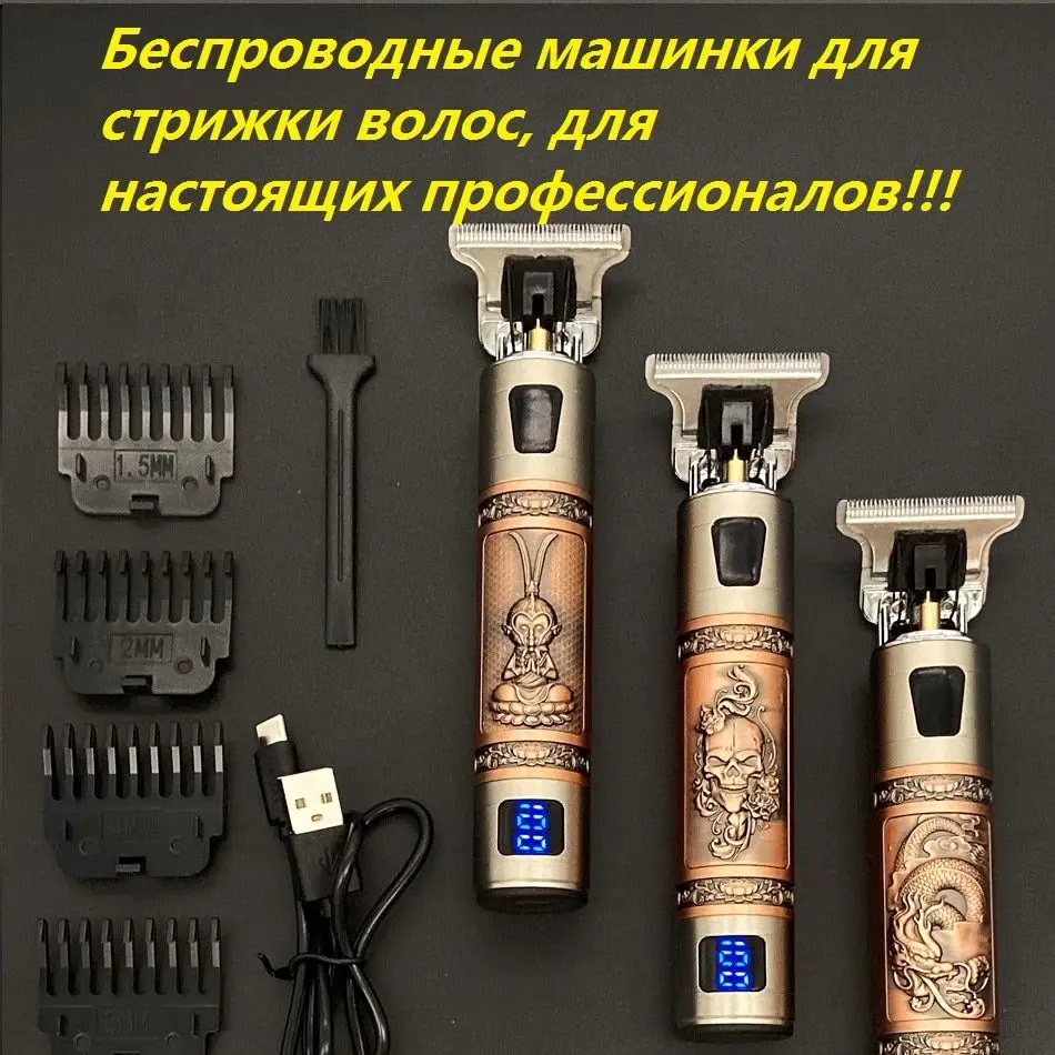 Теперь вам не нужен парикмахер, вы можете сделать качественную и дизайнерскую стрижку и прическу в комфортном для себя доме. Используйте его для регулировки волос и бороды. Эти машинки достаточно светильник. Usb-зарядка, вы можете заряжать машинки через usb-порт через компьютер или мобильный телефон, зарядный адаптер. Чрезвычайно мощный. Т-образное лезвие изготовлено из высококачественной стали. Ручная конструкция придает уникальный внешний вид. В комплект входит триммер, 3-4 насадки (зависит от вида), аккумулятор, кисть, usb-шнур.