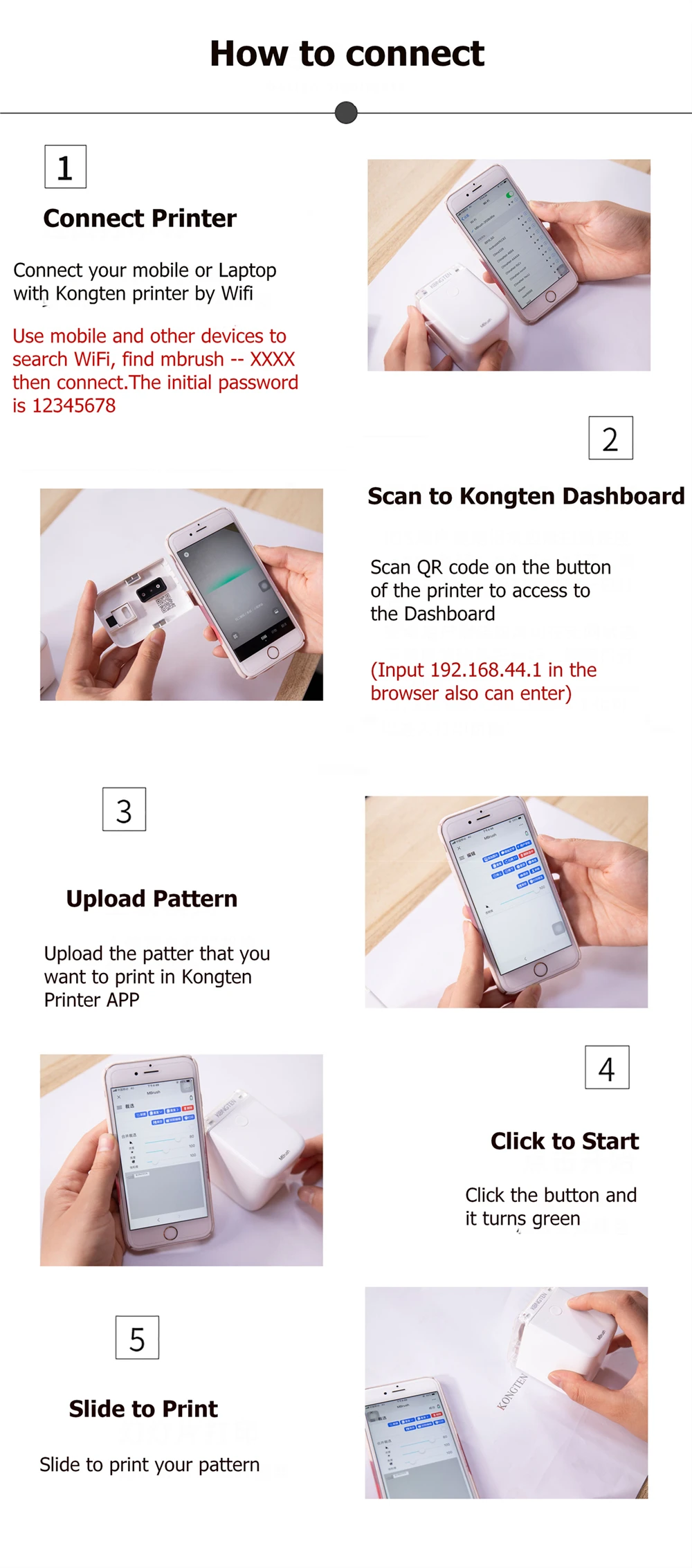 1. Когда вы получаете принтер, пожалуйста, обратитесь к Руководству по продукту, видео основного изображения ссылки на продукт, текст и описание изображения на странице деталей продукта. Узнайте об установке чернильных картриджей, как подключить ваш мобильный телефон к принтеру и другие меры предосторожности.2. При получении принтера сначала напечатайте Оригинальное изображение, чтобы проверить настройки цвета принтера и чернил из чернильного картриджа.Чернильный картридж использует трехцветную тепловую струйную технологию, и насадка будет засорена, если она не используется в течение длительного времени. Например, чернила не будут разряжаться, содержание печати прерывается, или цвет является ненормальным и т. д., пожалуйста, протрите сопло чернильного картриджа и напечатайте оригинальный рисунок, чтобы наблюдать.Если ситуация с печатью не улучшается или улучшение не является очевидным, пожалуйста, Замочите сопло чернильного картриджа в горячей воде в течение 10 ~ 30 секунд, прежде чем продолжать печатать.3. Когда вы печатаете индивидуальный контент, пожалуйста, сохраните пользовательский контент перед печатью.4. Когда вы печатаете на неабсорбирующих материалах, таких как пластик, стекло, металл и т. д., вам нужно приобрести дополнительное покрытие.4. По любым вопросам о принтере, вы можете связаться с нами в любое время, и мы ответим вам как можно скорее.
