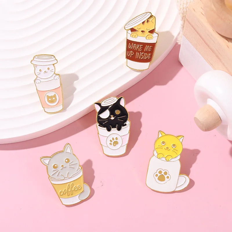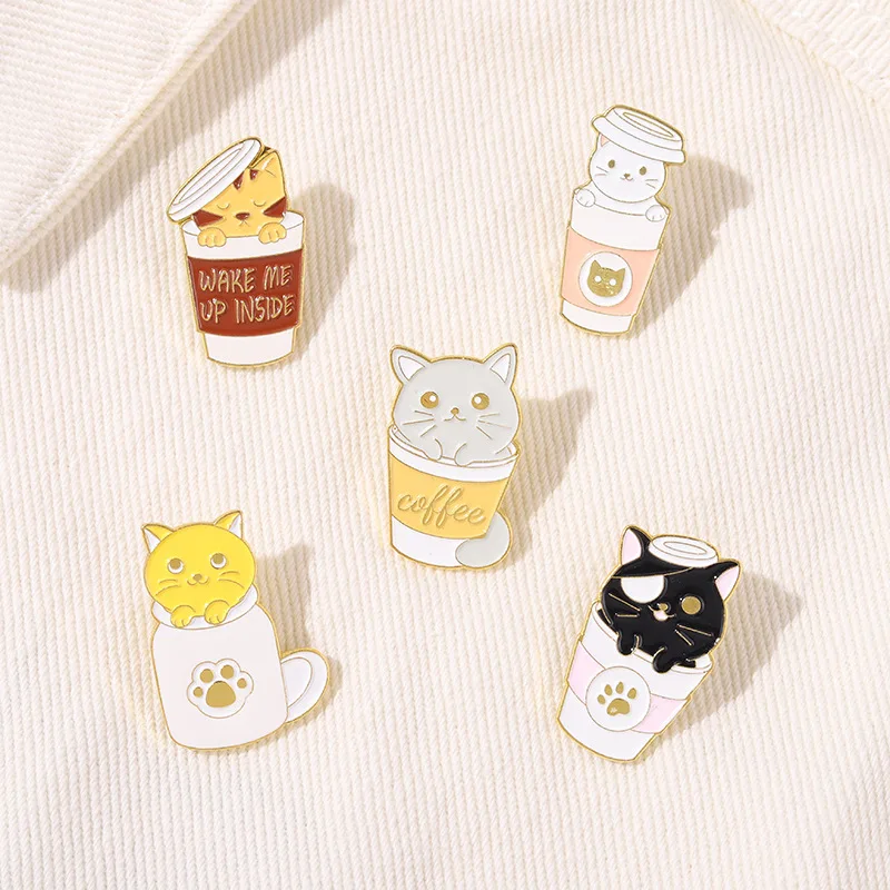 Кофейная кошка жесткие эмалевые булавки собирать кофейную чашку с Л...