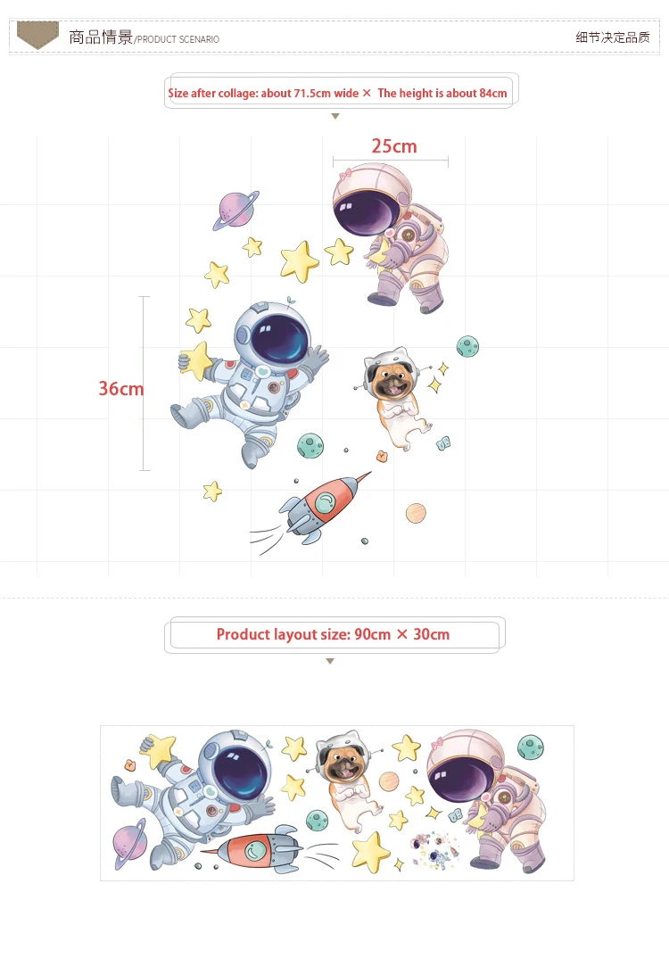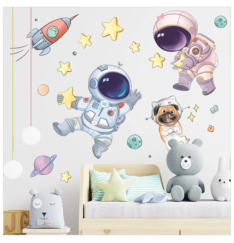 Наклейки на стену в виде космоса, астронавта, детской комнаты, детского сада, Вселенной, звездного мультфильма, милый фон, обои на стену, самоклеящиеся