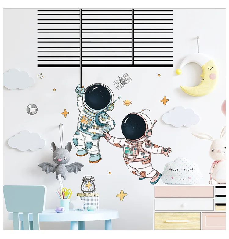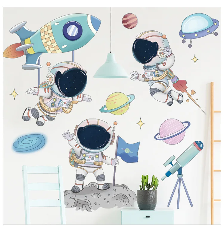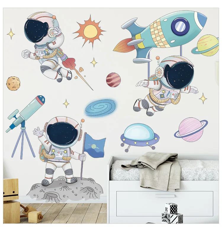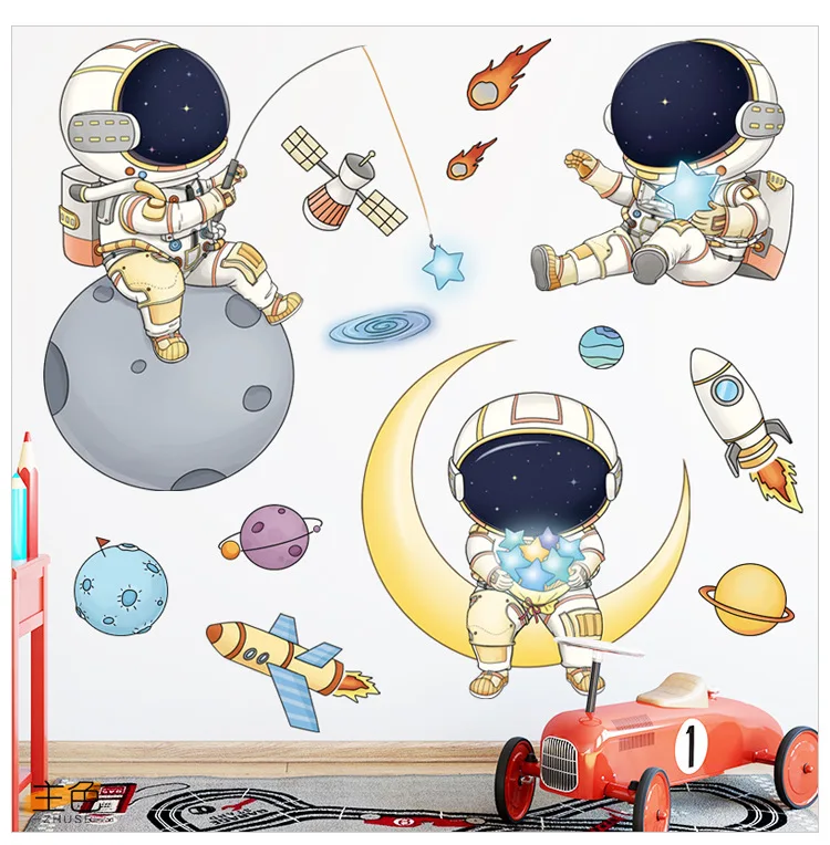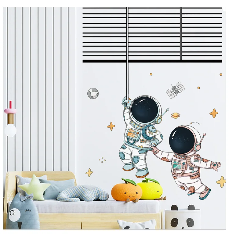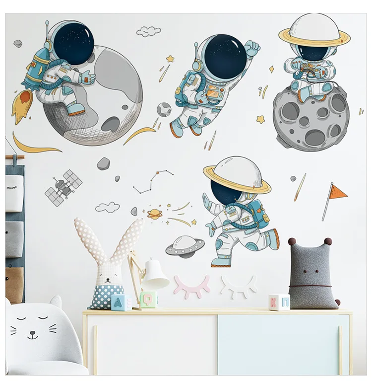 Космический астронавт настенные наклейки детская комната Детский сад Вселенная Звездный мультфильм милый фон Настенные обои самоклеющиеся