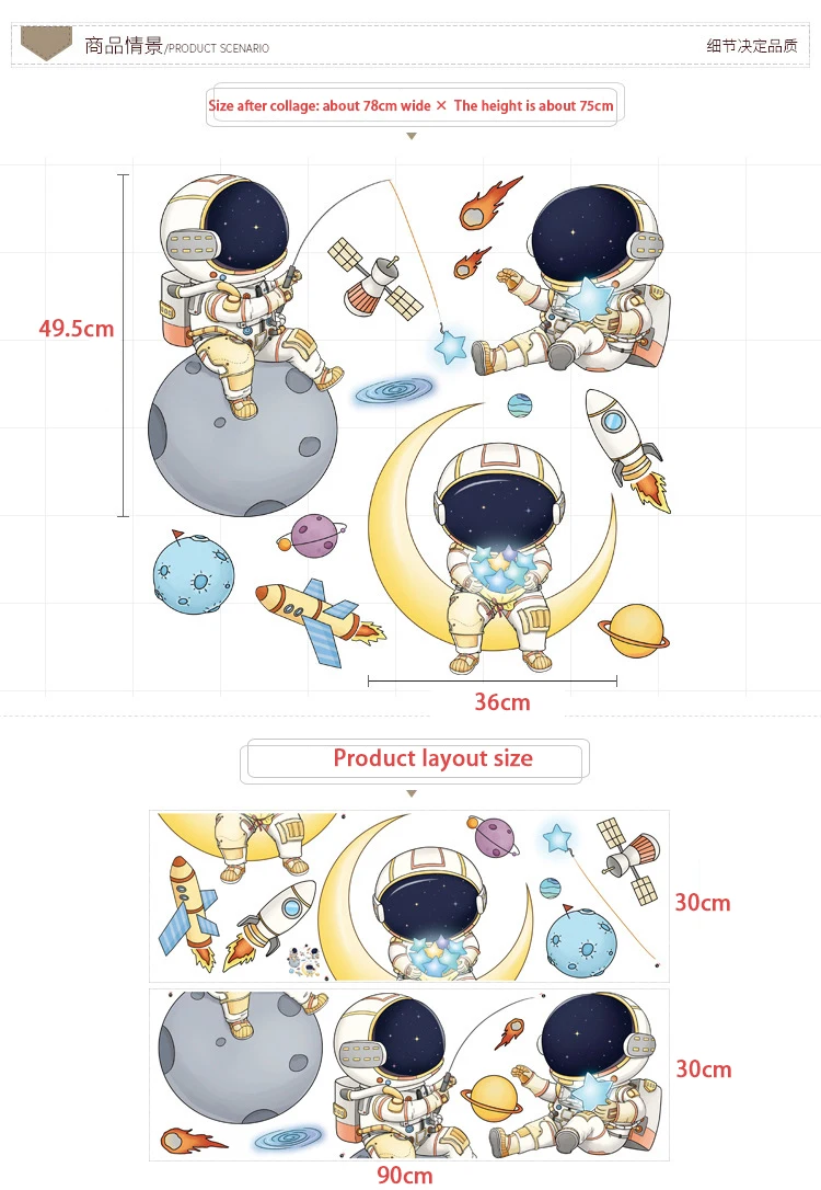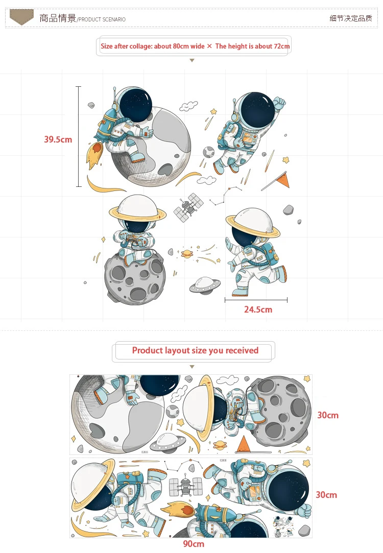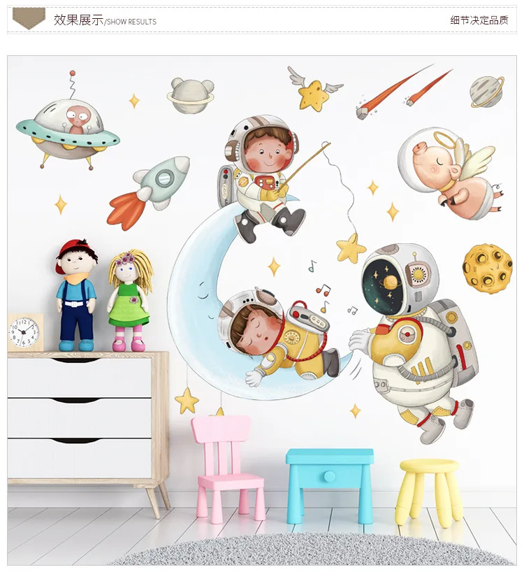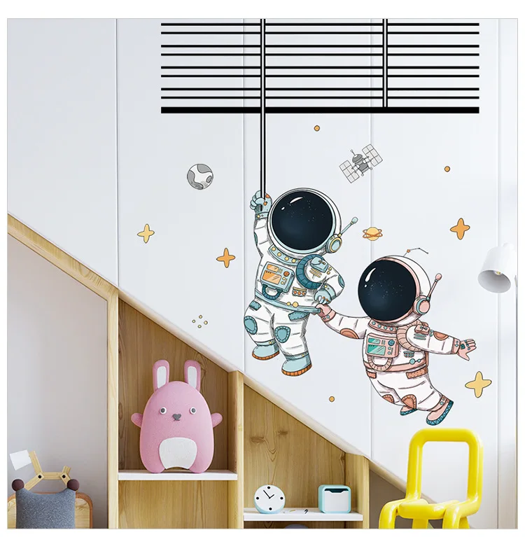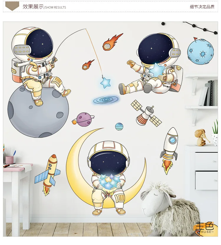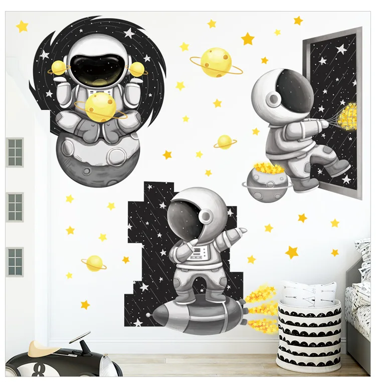 Космический астронавт настенные наклейки детская комната Детский сад Вселенная Звездный мультфильм милый фон Настенные обои самоклеющиеся