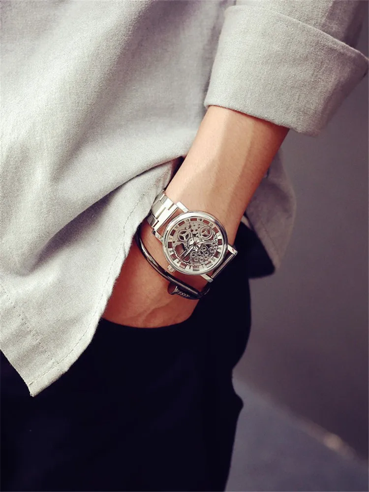Часы-скелетоны мужские с браслетом из нержавеющей стали, 2020