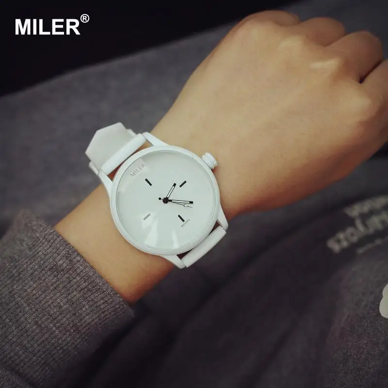 Часы наручные MILER женские с мягким силиконовым ремешком, брендовые кварцевые, для любимых, черные белые