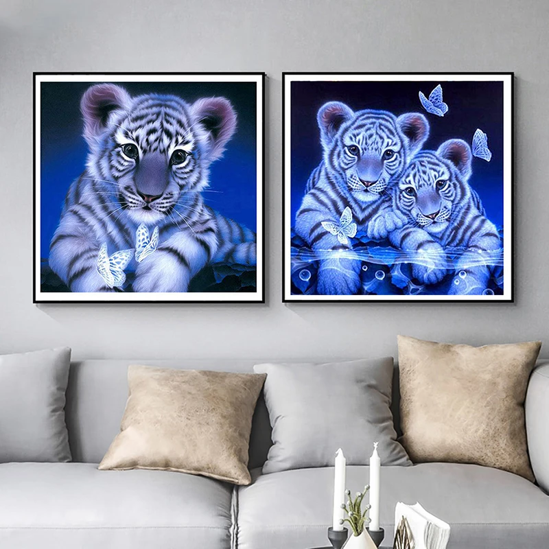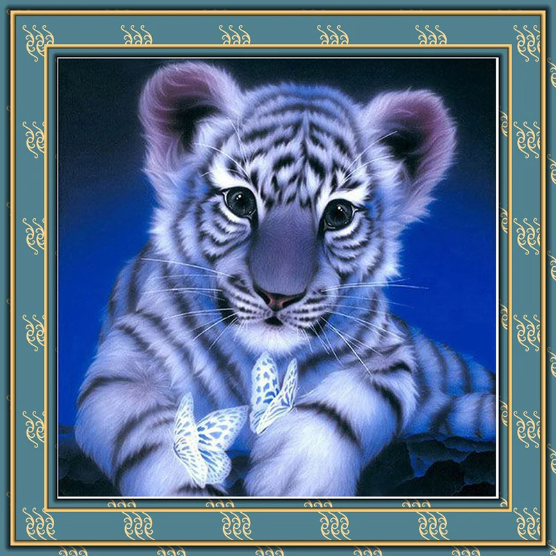 Алмазная живопись белый тигр Cubs 5D DIY Вышивка с животными Стразы...
