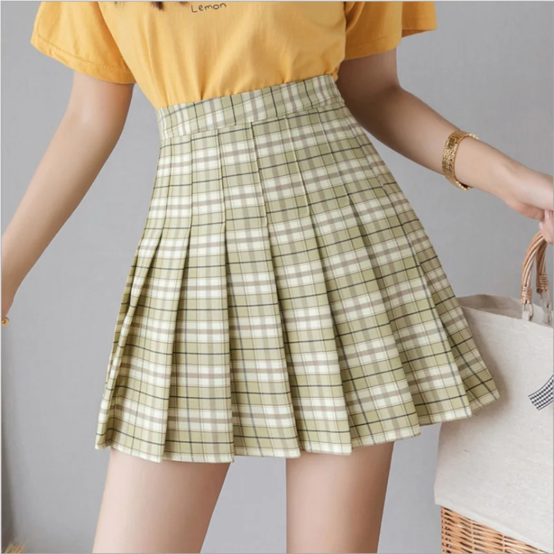 Женская летняя юбка в шотландскую клетку, модель 2020 года, юбки с завышенной талией, студенческие плиссированные юбки, Женская Милая Мини-юбка трапециевидной формы для танцев