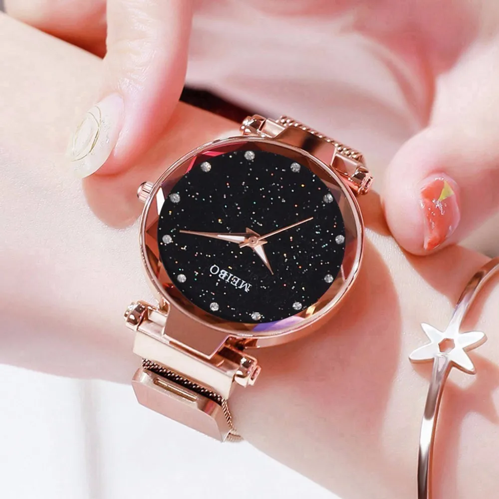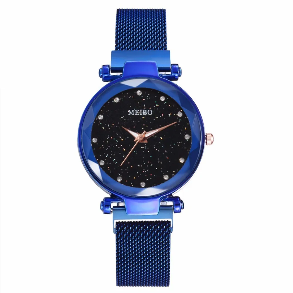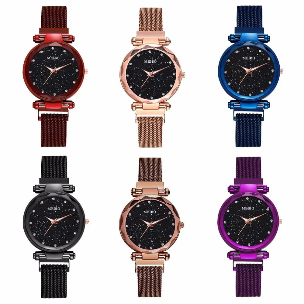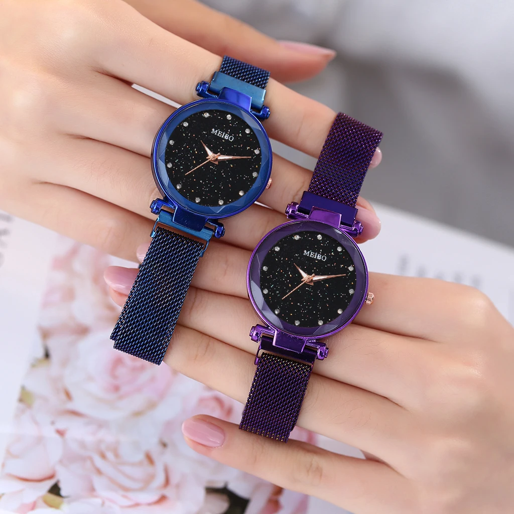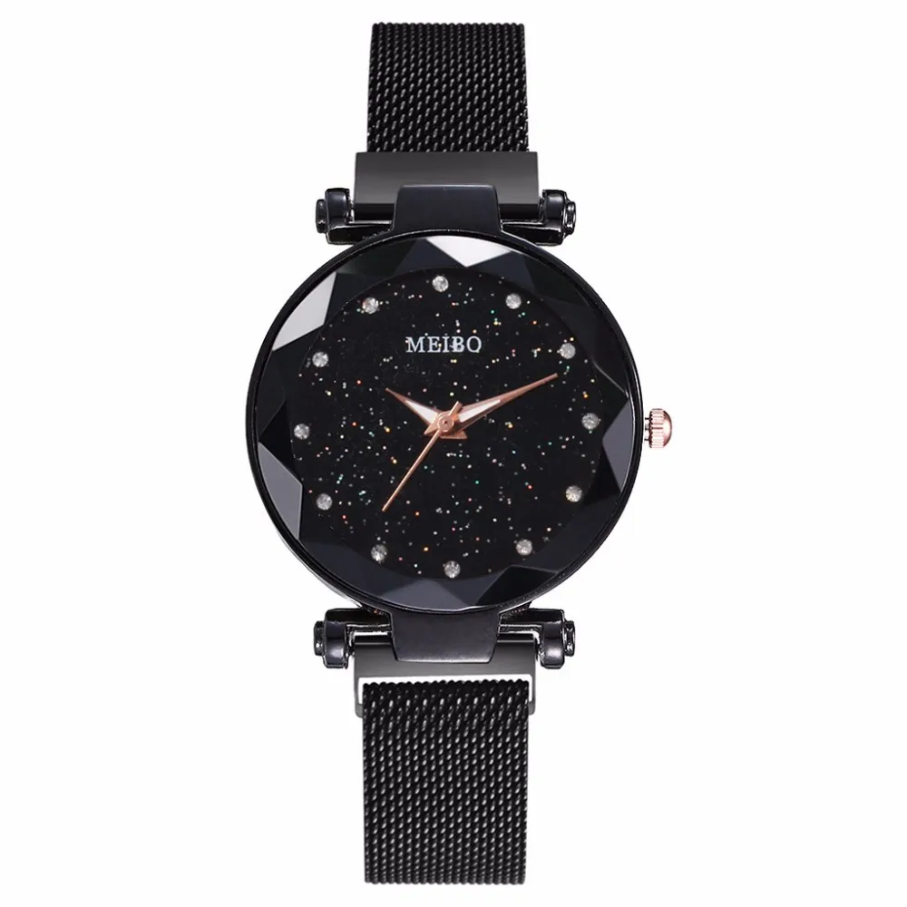 Лидер продаж, женские кварцевые часы со звёздным небом и сетчатым браслетом
