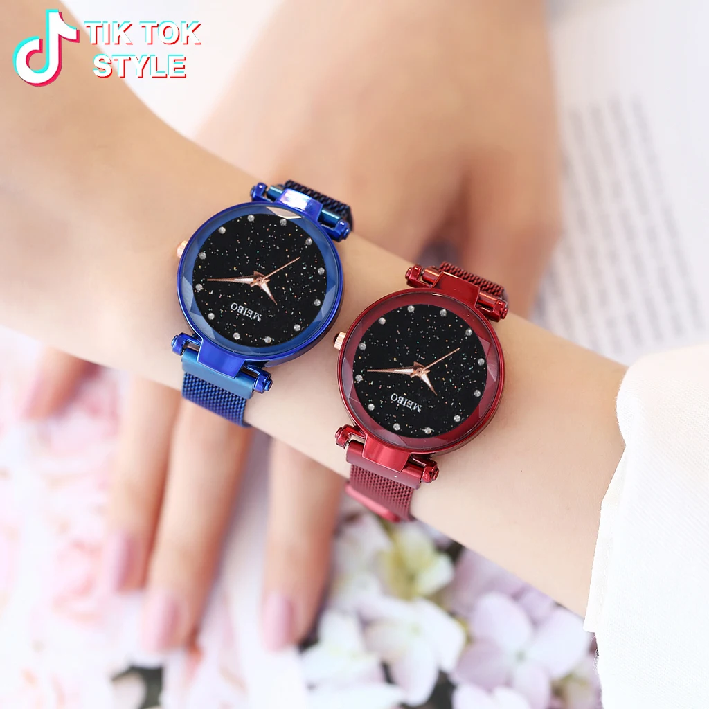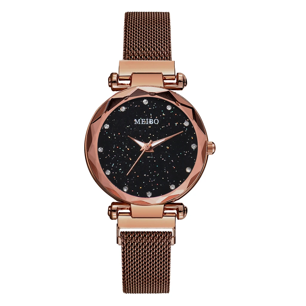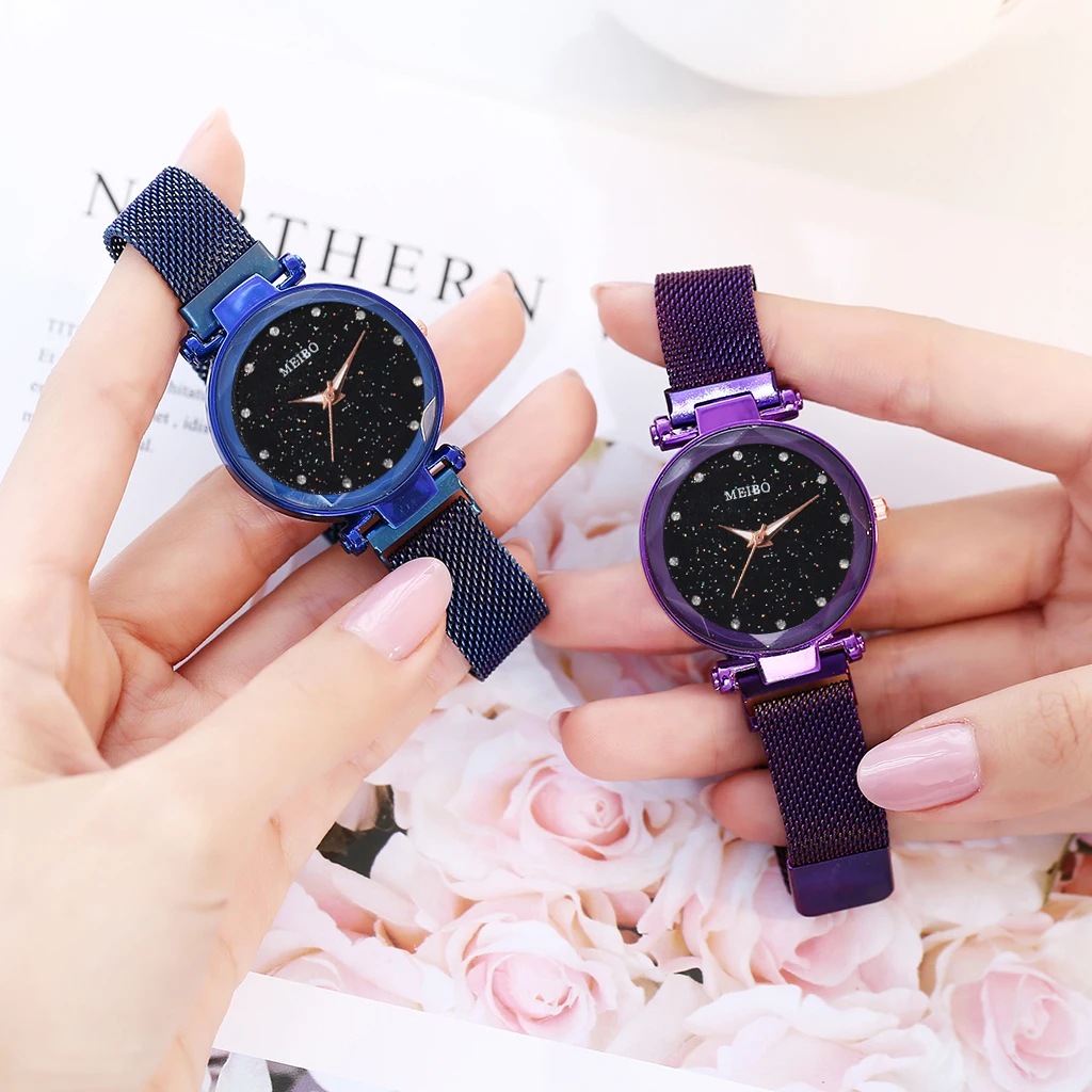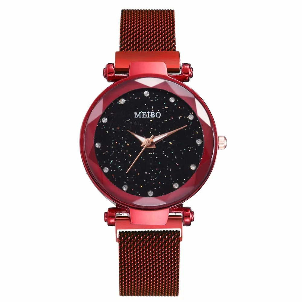 Лидер продаж, женские кварцевые часы со звёздным небом и сетчатым браслетом