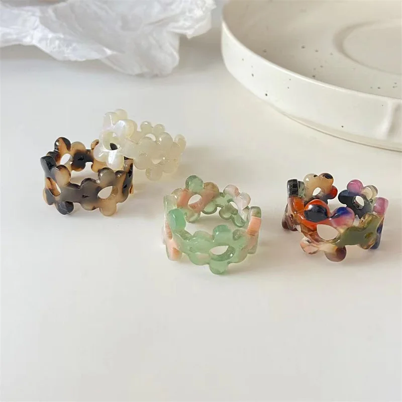 Винтажные модные кольца в виде цветка из уксусной кислоты для женщин, регулируемые кольца