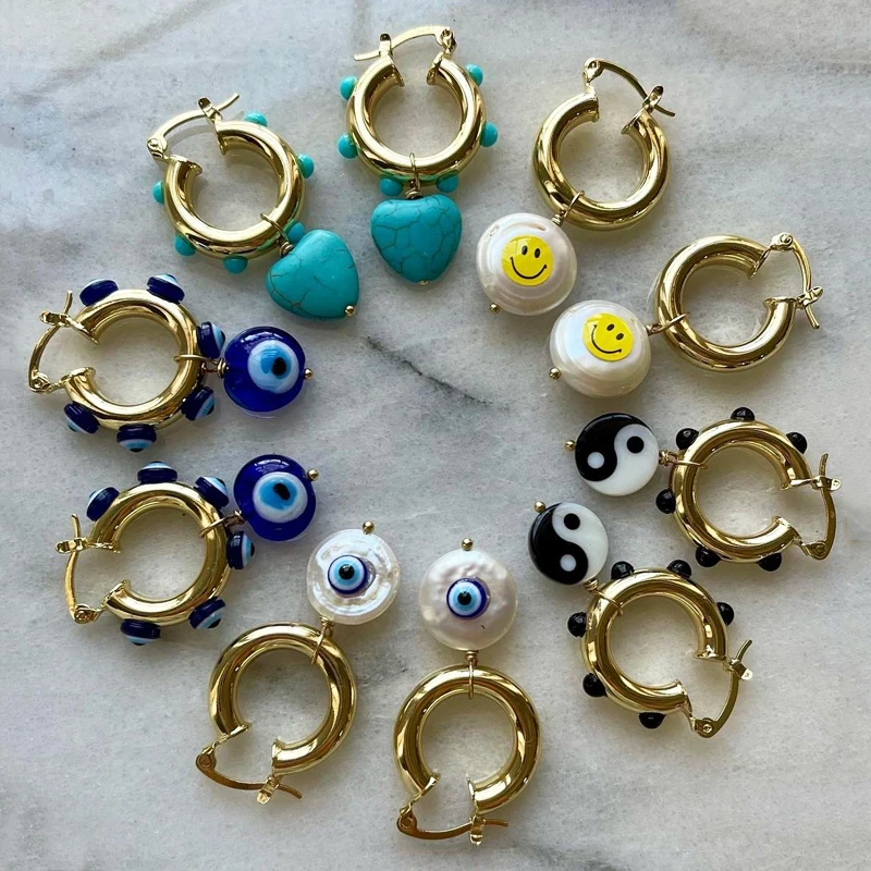 Толстые серьги-кольцо золотого цвета, украшенные модными подвесками, серьги-капли, подарок для друзей на Хэллоуин
