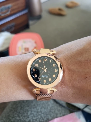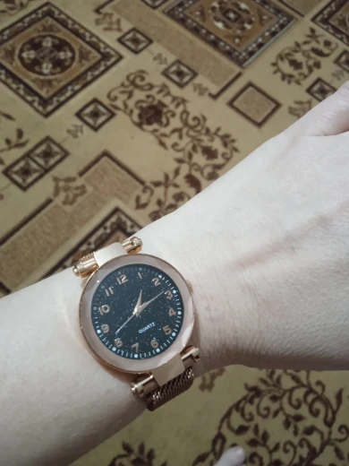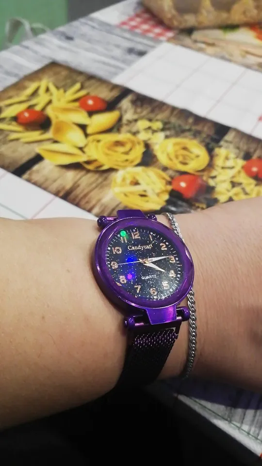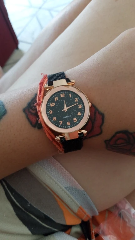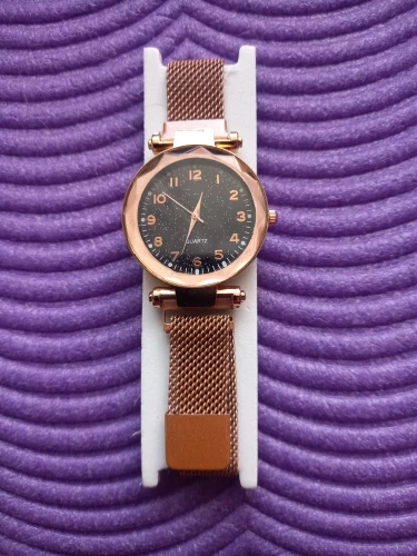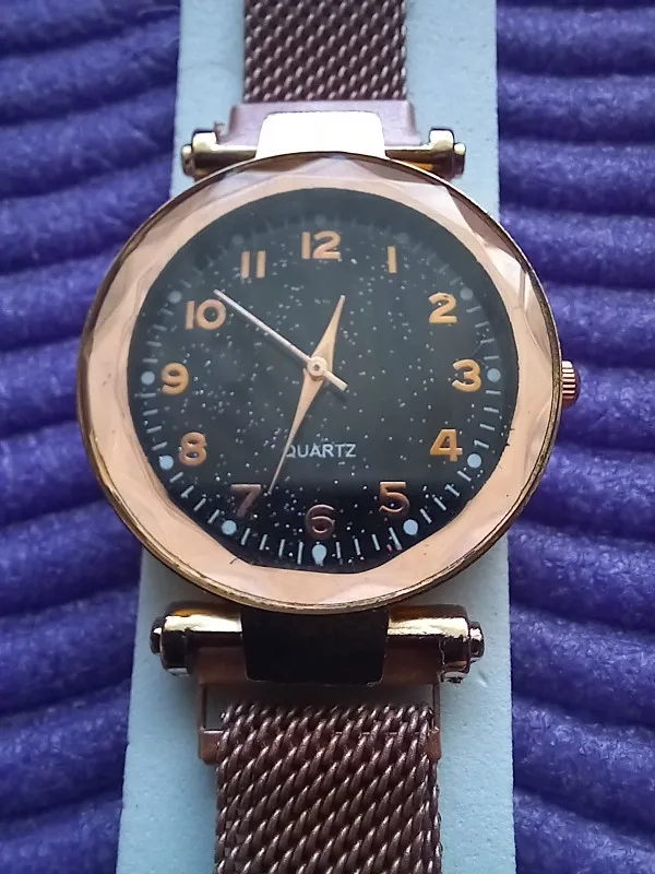 Часы очень красивые и хорошо работают. Цифры четкие и хорошо видны. Он очень легко прилипает благодаря магниту. К сожалению, магнит скользит по металлическому браслету, который становится слишком широким со временем. Я купил другой вид браслета, чтобы заменить его. Вот почему я поставил 4 звезды