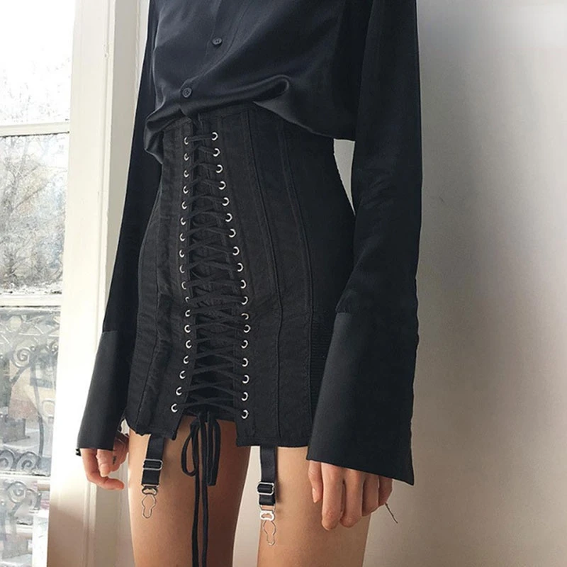 Юбка-мини в готическом стиле, с завышенной талией, на шнуровке