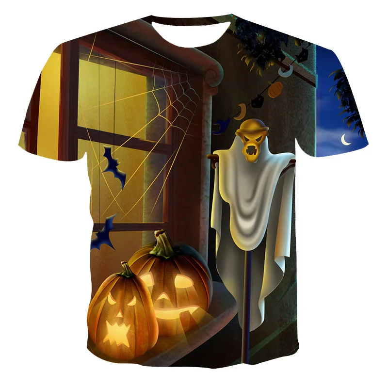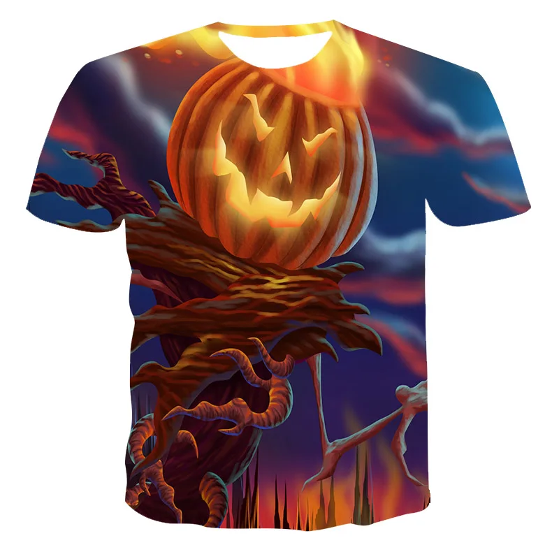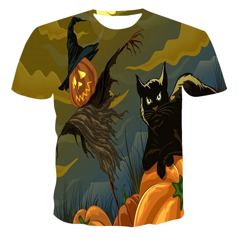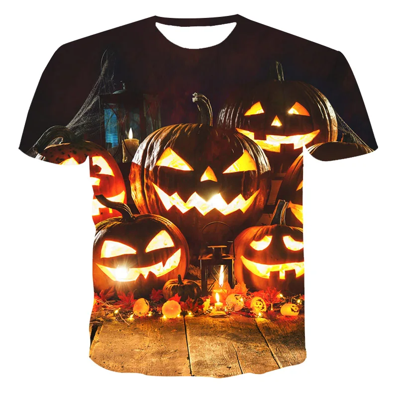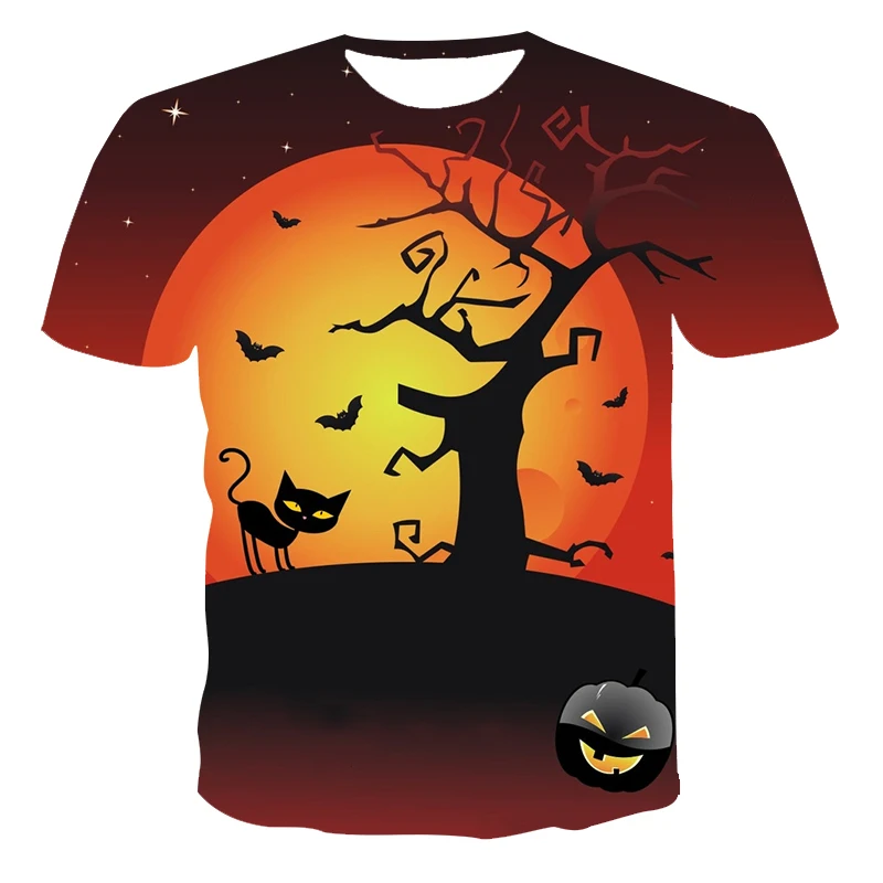 Детская футболка на Хэллоуин, с тыквенным фонариком, Рождественская елка, футболка с коротким рукавом с 3D принтом ведьмы, веселая женская одежда
