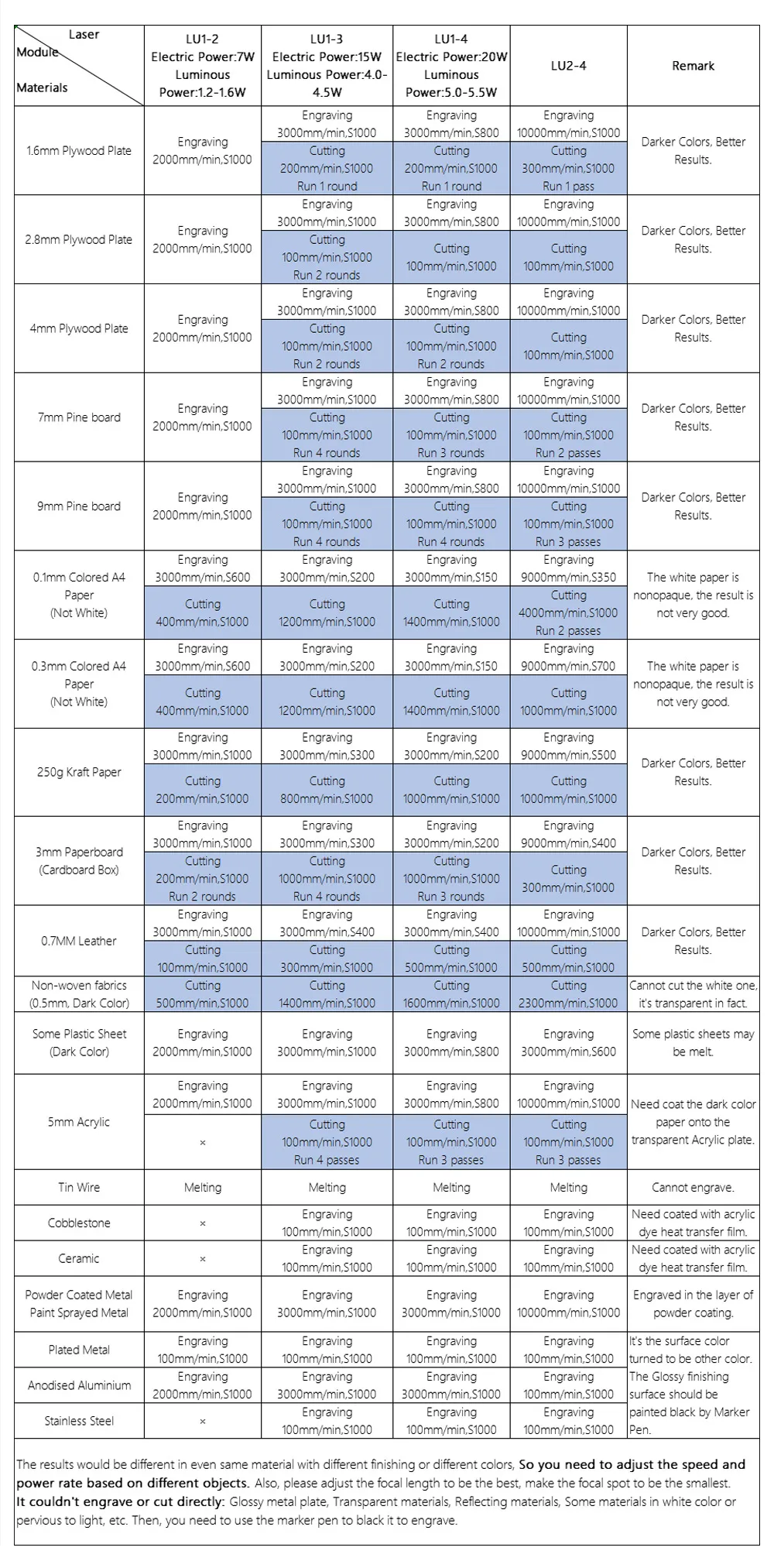 Computer OSWin XP, Win 7, Win 8, Win 10 (LaserGRBL) Mac and Linux (LightBurn)