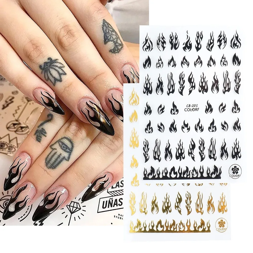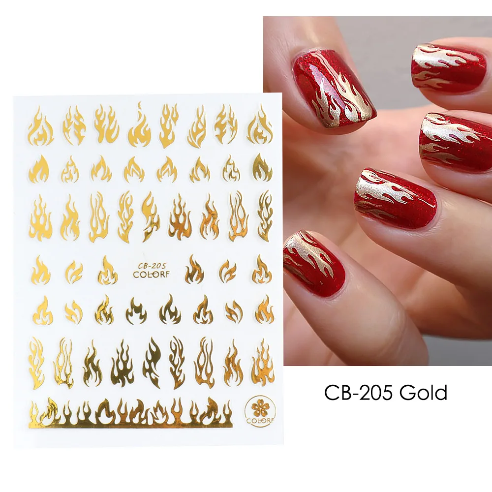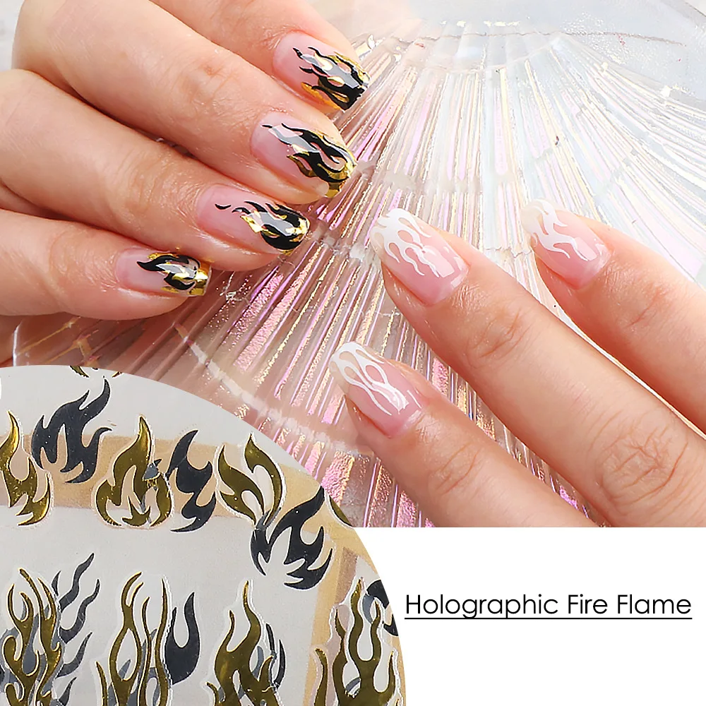 1 шт. голографические 3D огненные наклейки золотого и серебряного цвета для ногтей, черно-белая адхенсивная наклейка для украшения ногтей