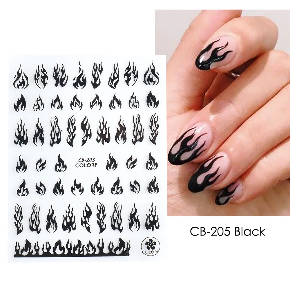 Голографическая 3D наклейка для ногтей с эффектом огненного пламени, черно-белая наклейка для гель-лака, украшение для ногтей, 1 шт.