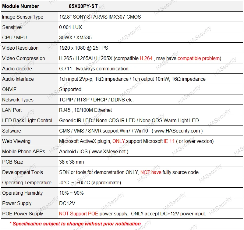 32x32 мм CVBS 12.8 "Sony STARVIS IMX307 CMOS + NVP2441 CCTV camera ...