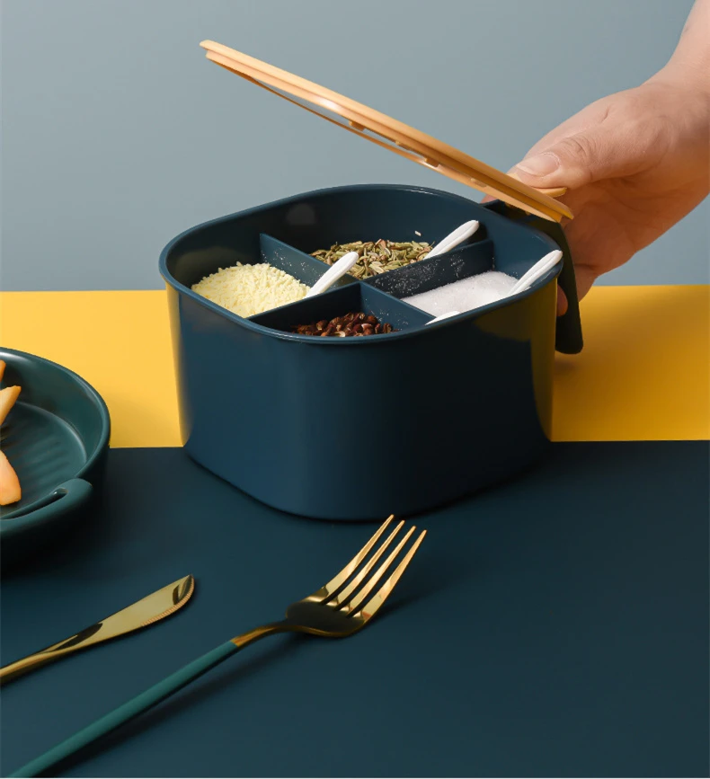 Четырехточечная банка для специй с крышкой, прозрачная коробка для хранения соли и перца, контейнер для специй, кухонные наборы контейнеров