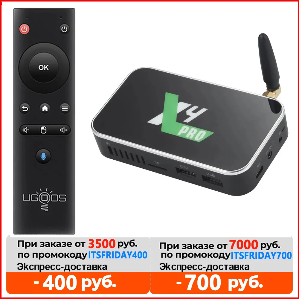 Приставка Смарт-ТВ UGOOS X4 PRO, Android 11,0, 4 + 32 ГБ, 1000 м, Wi-Fi
