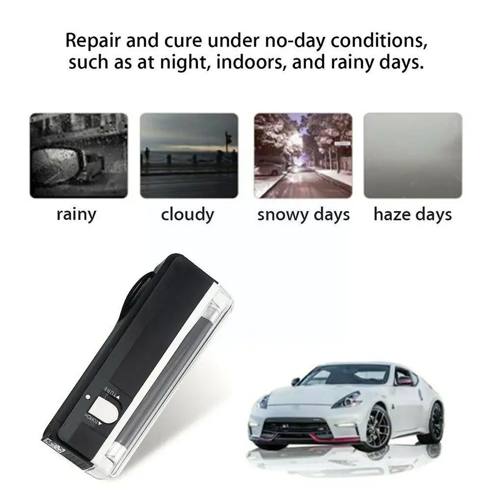 Спецификация:Название: стеклянный УФ-светильникМатериал: пластикРазмеры: около 16*5,5*2 см/6,3*2,2*0,8 дюймовПодходит для следующих ситуаций:1. Профессиональный магазин по ремонту стекла повышает эффективность работы2. Ремонт и лечение при бездневных условиях, таких как в ночное время, в помещении и в дождливые дни.3. Внутренний слой стекла поврежден и должен быть отремонтирован и вылечен.Как использовать:1. Нажмите переключатель вручную. Для фонарика нажмите переключатель назад на УФ-лампу. Середина закрыта.2. Откройте УФ-лампу, близко к высушенной пленке, около 1-2 минут, чтобы завершить первоначальное отверждение раствора, если ремонтный раствор слишком много, вы можете увеличить время, когда это необходимо, при условии фактического отверждения.3. Обратите внимание на положительную и отрицательную батарею, если светильник темный, то есть, измените батарею.Особенности:1. Лечение поверхности при ремонте трещин в течение 60-90 секунд2. Проверьте скрытые функции безопасности на банкнотах и паспортах3. Проверьте качество бумаги на защитных каналах4. Проверьте водяные знаки и полосы безопасности5. Функция освещения, супер яркий светодиодный6. Подчеркивает изменения и окрашиваниеПосылка:1x стеклянный УФ-светильник (батареи не входят в комплект)