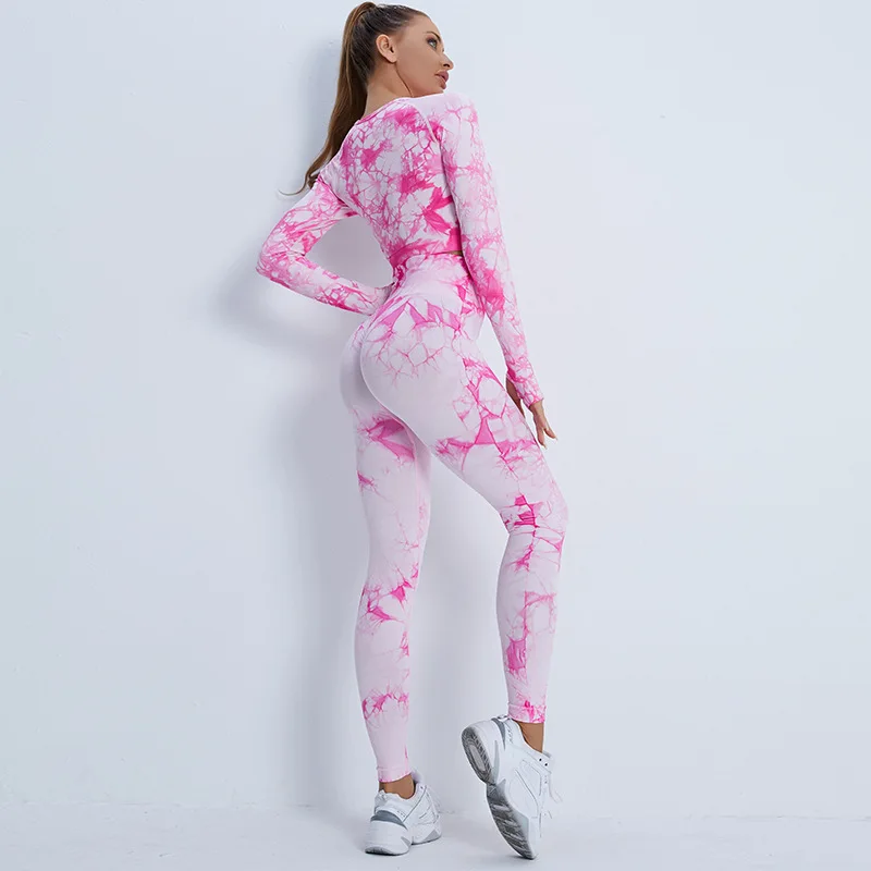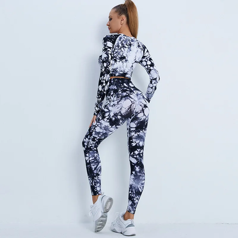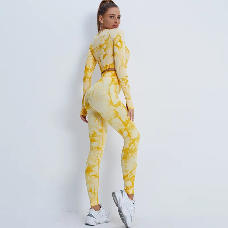 Бесшовные комплекты для йоги с галстуком, спортивные штаны для фитнеса с высокой талией и высоким поясом, костюм с длинным рукавом, Женский комплект леггинсов