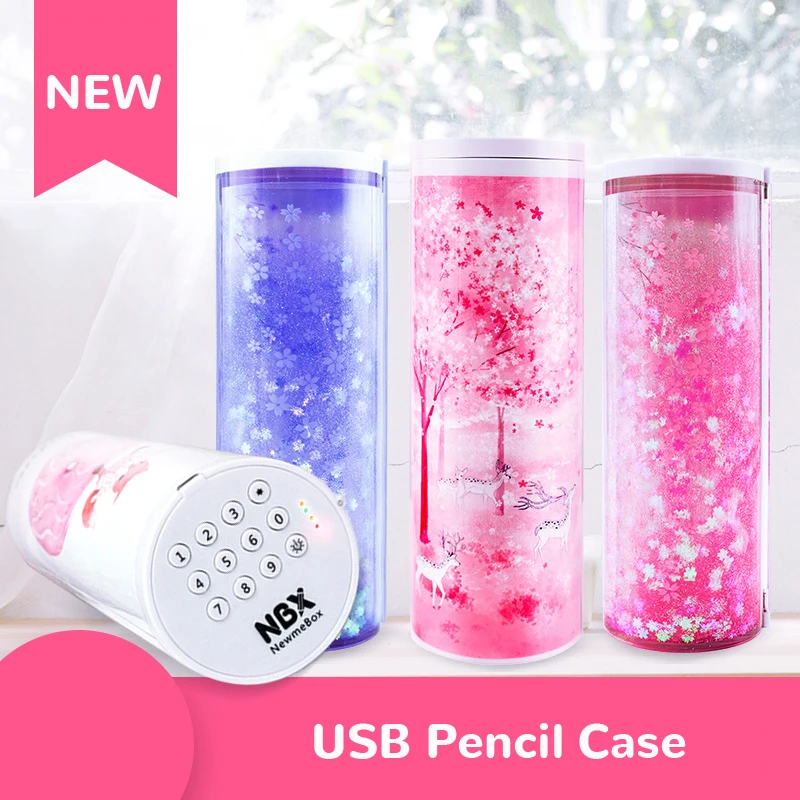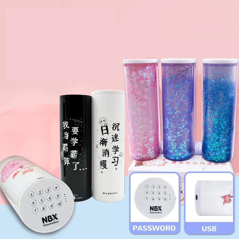 Новый милый чехол для карандашей, кавайный полупрозрачный пенал с зыбучим песком, солнечным калькулятором, школьные принадлежности, школьные принадлежности с паролем