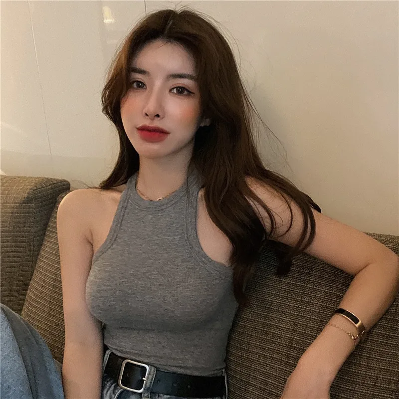 Однотонные майки, пикантный укороченный жилет в стиле Харадзюку, ко...