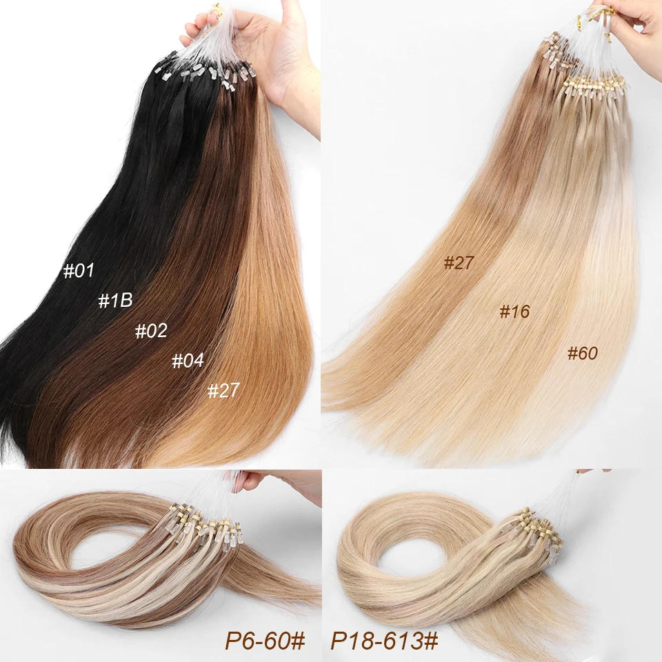 Наращивание волос с микро-петлей, натуральные волосы с микро-бусинами, 1 гшт. Non-remy, черные, коричневые, блонд, микро-звенья, человеческие волосы 12-24 дюйма