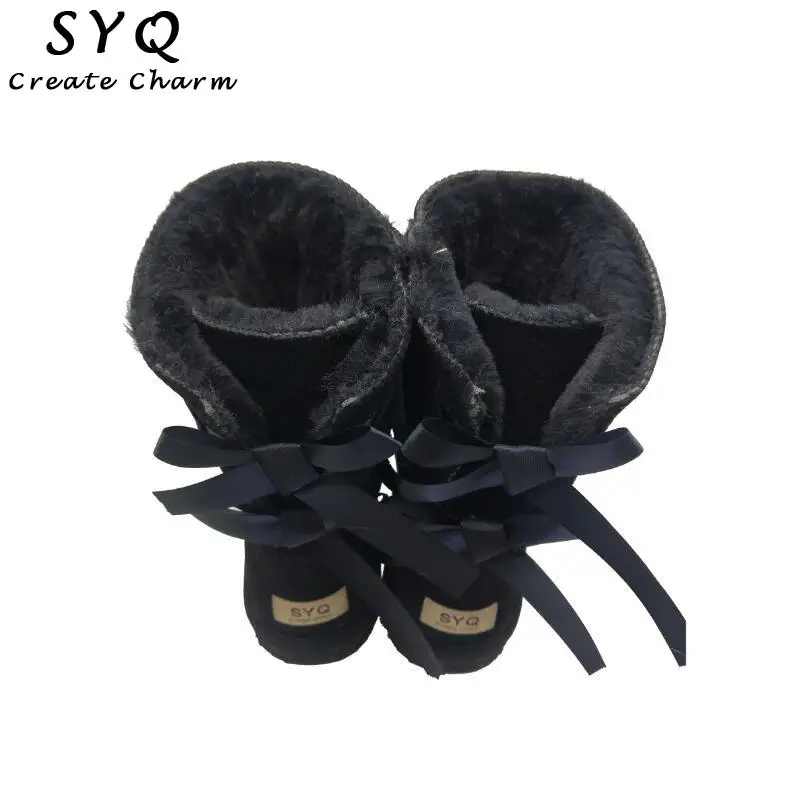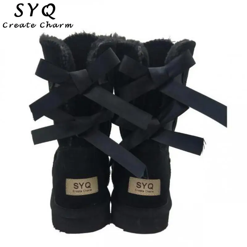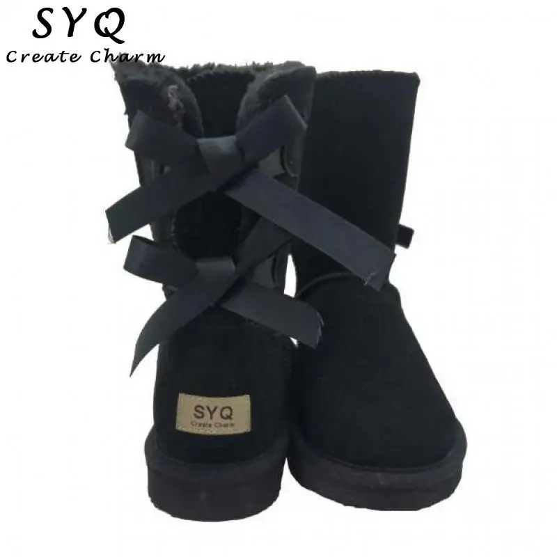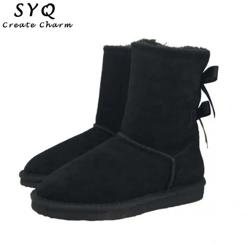 Модные Классические австралийские женские ботинки, обувь из коровьей замши, теплые зимние ботинки с двумя бантами, женские зимние ботинки до середины икры от известного бренда