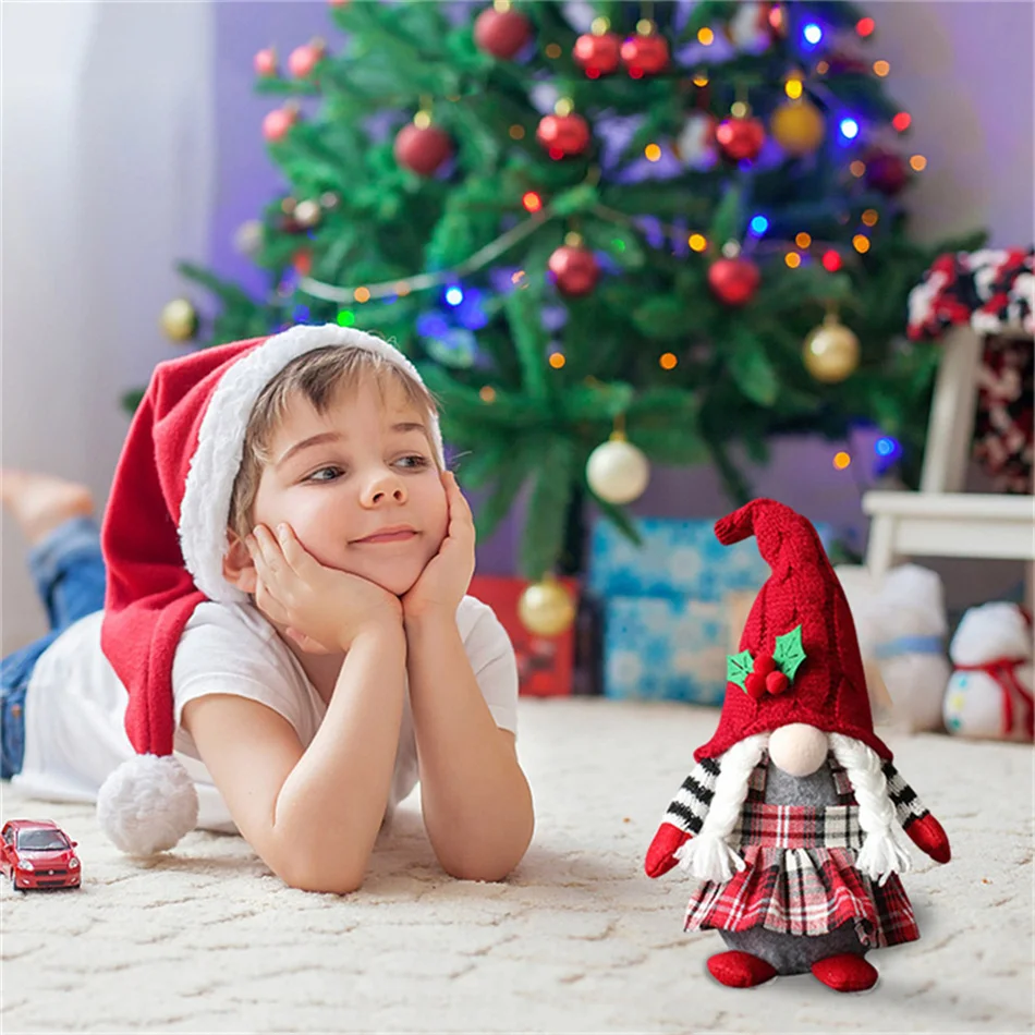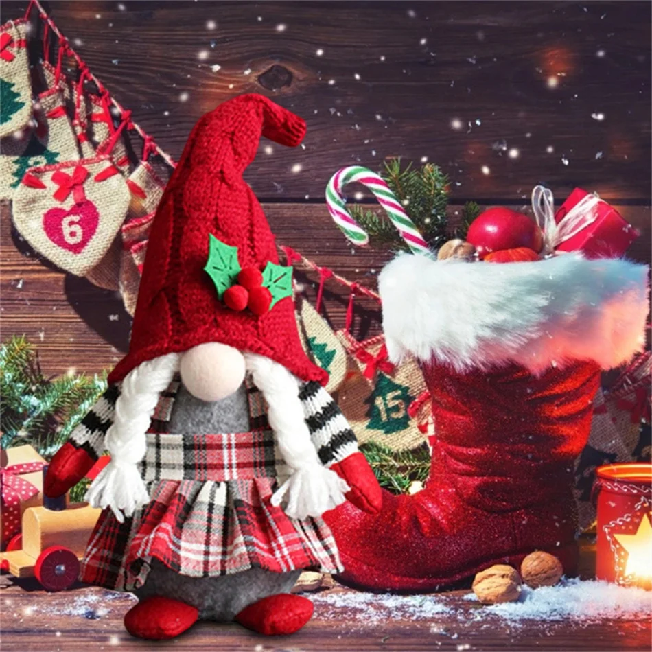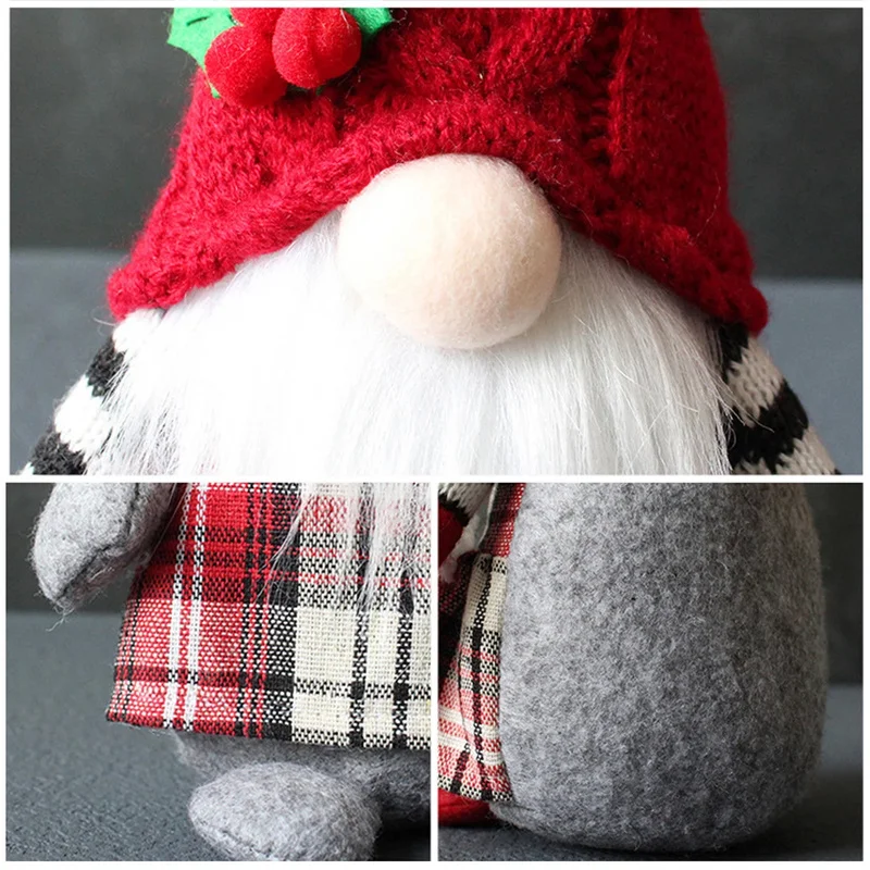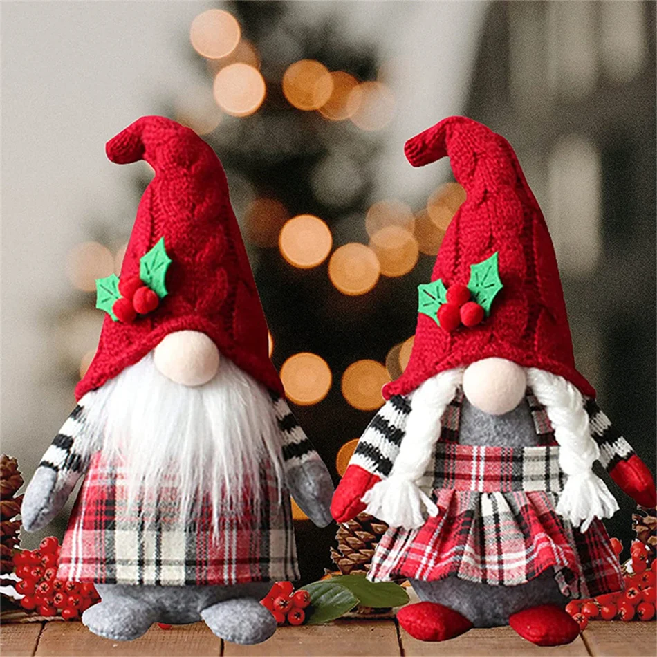 Рождественские гномы, Плюшевые Вязаные искусственные рождественские красные ягоды, гонки, карликовый эльф, украшения, стоячие куклы ручной работы, без лица