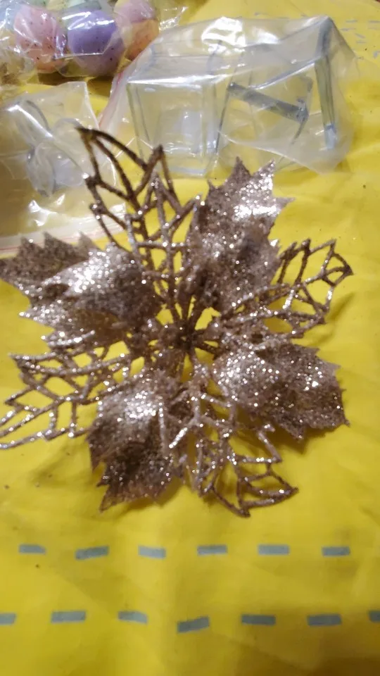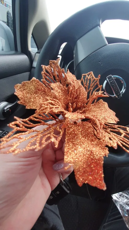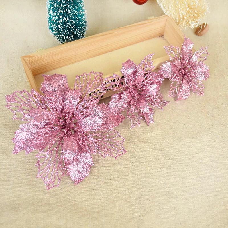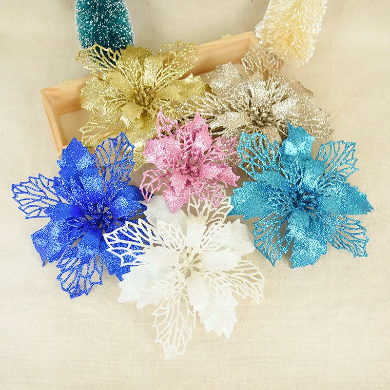 10 шт. 91116 см, пустотелые Искусственные Рождественские цветы, блестящие пуансетические украшения для рождественской елки, золотые и красные розы для домашнего декора