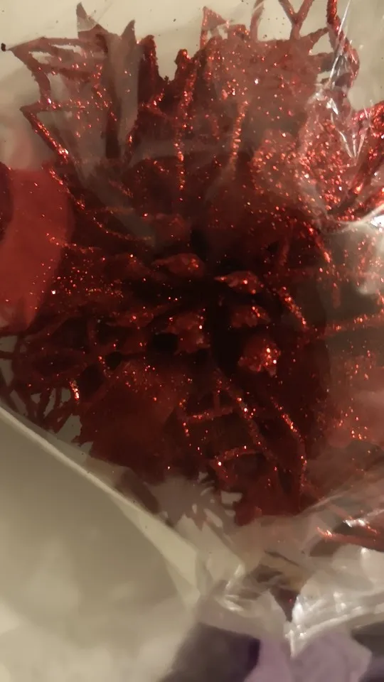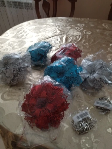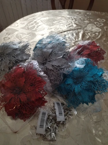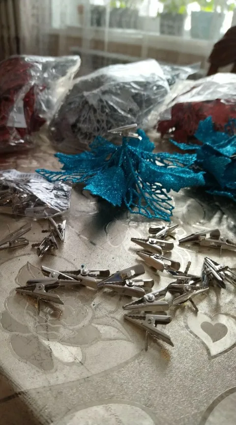 Цветы пришли целые, без зажимов имейте ввиду что нужно покупать их отдельно, в целом товар понравился единственный минус блёстки сыпятся но это не критично.