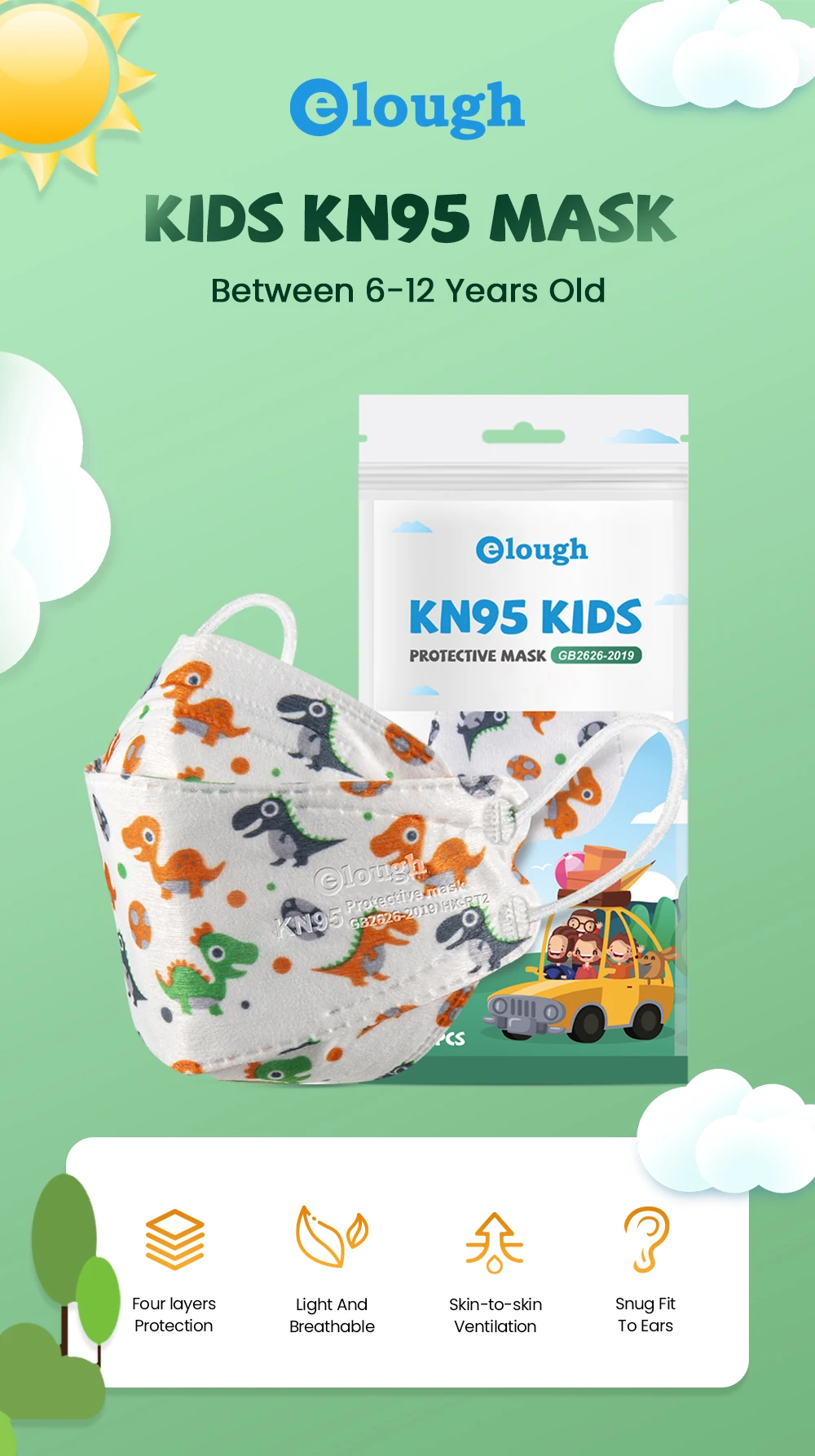 Маска Kn95 Elough детская, многоразовая, Kn95 FPP2, 10-100 шт.