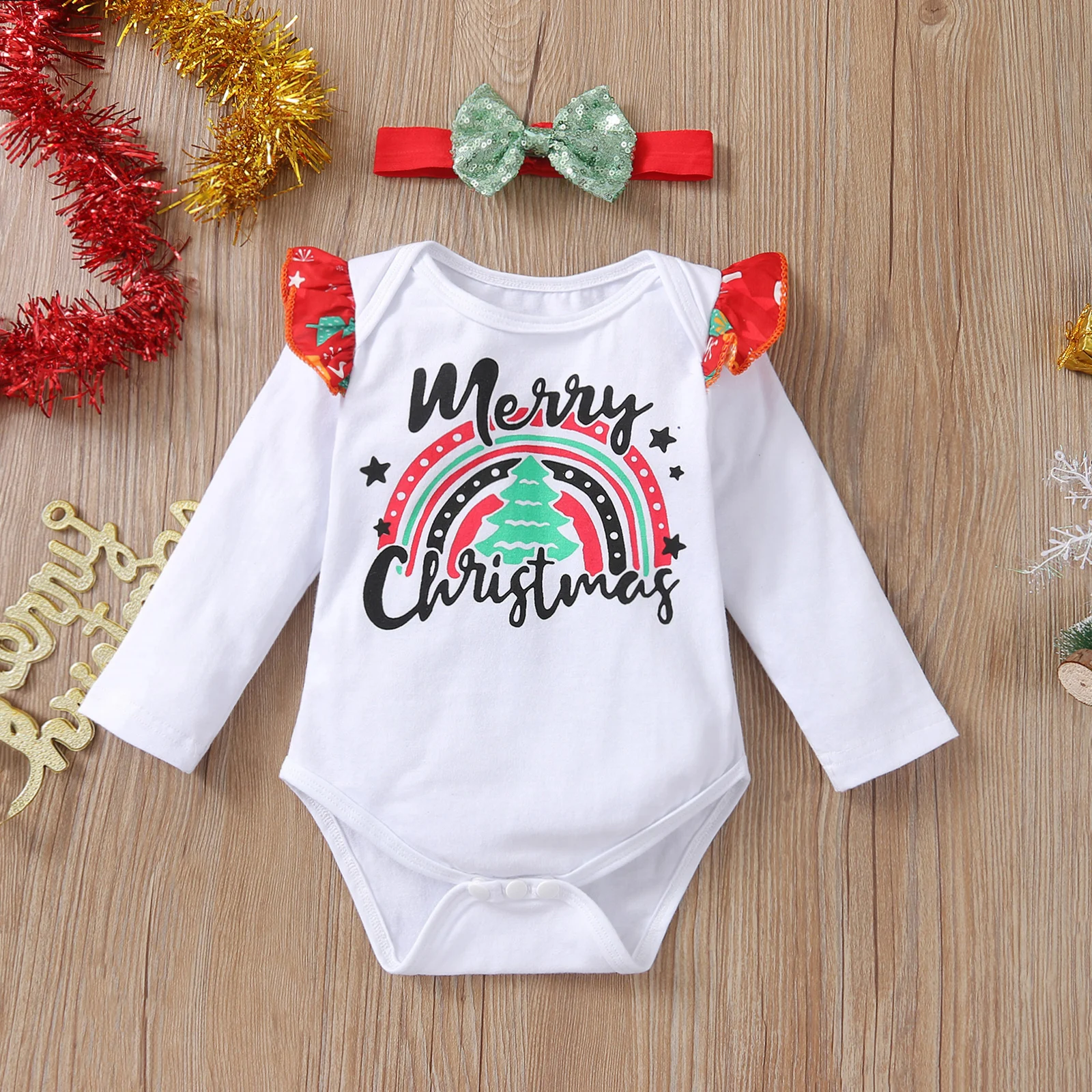 Рождественская одежда для малышей, комбинезон с длинным рукавом и о...