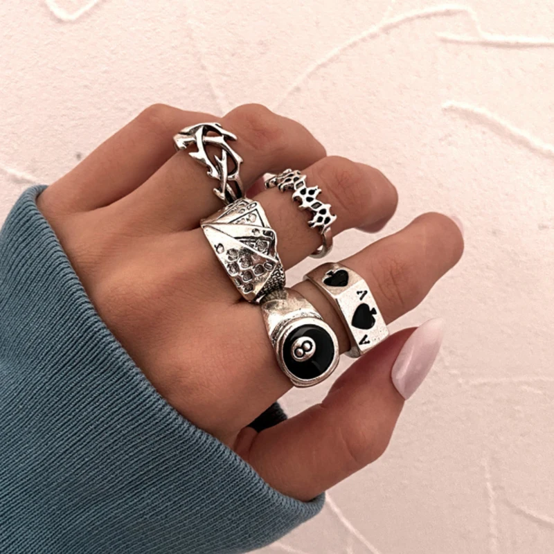 Набор колец в стиле панк для покера и бильярда для женщин, винтажны...
