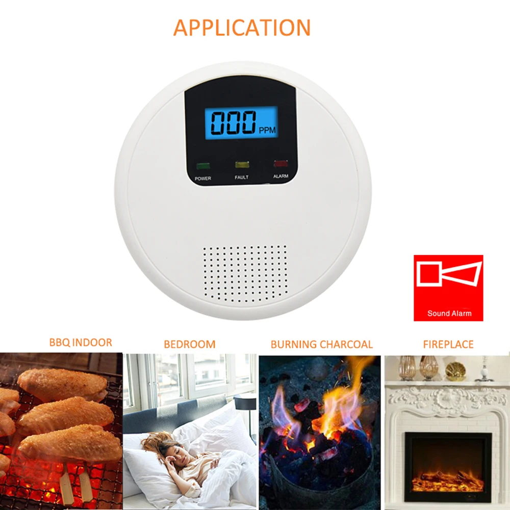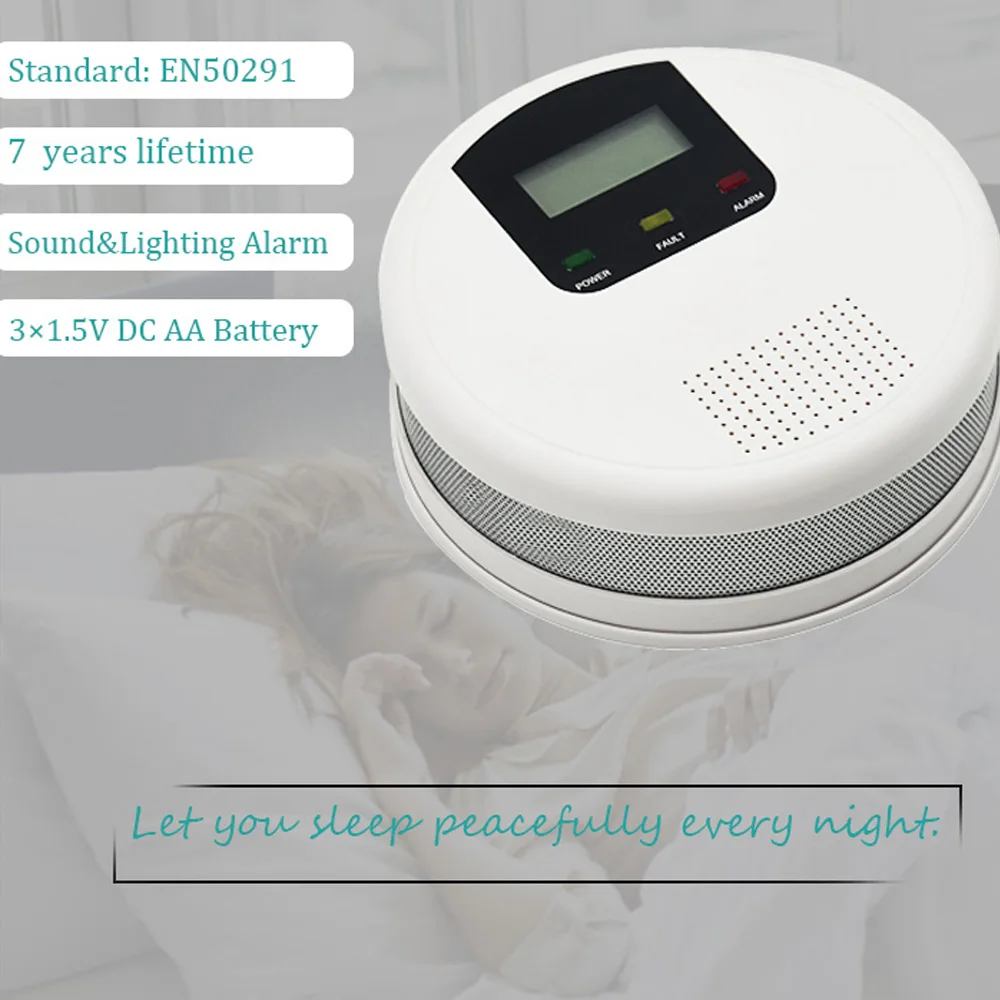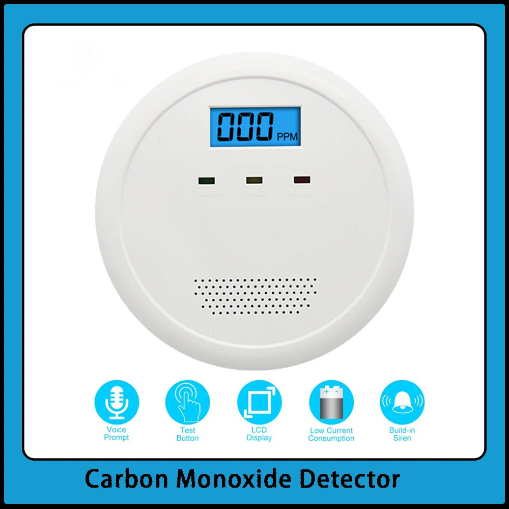 Детектор угарного газа с 7-летним сроком службы датчика, с мигающей Красной светодиодной сиреной и сигнализацией 85 дБ, датчик CO gas, защита для дома