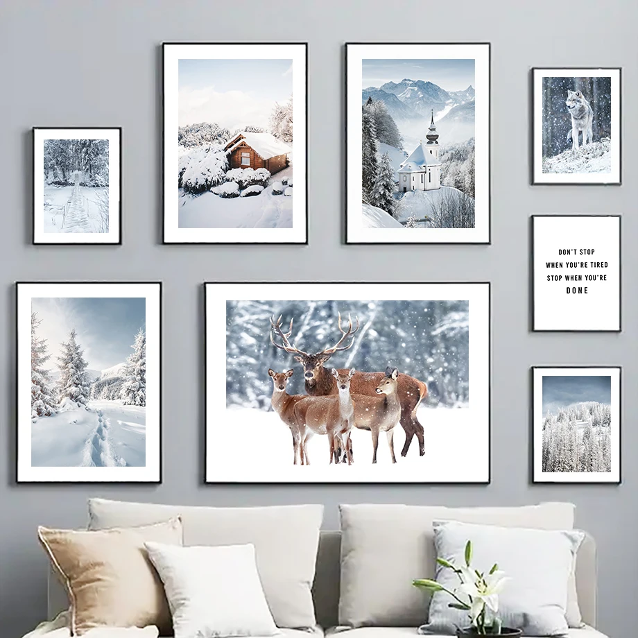 Настенная картина с изображением зимнего снежного леса моста гор оленя на холсте скандинавские постеры и принты настенные картины для декора гостиной icon star icon star icon star icon star icon star