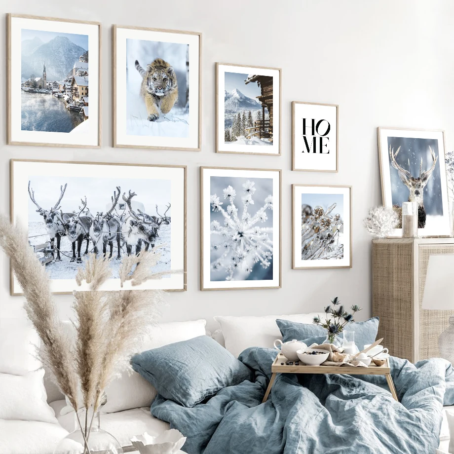 Настенная картина с изображением зимнего замка дома сосновый лес олень тигр на холсте скандинавские постеры и принты настенные картины для декора гостиной